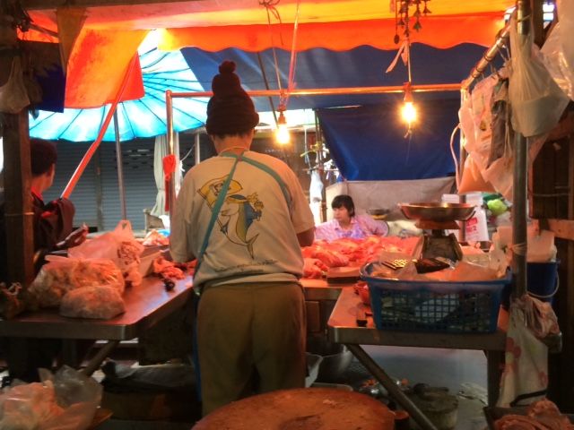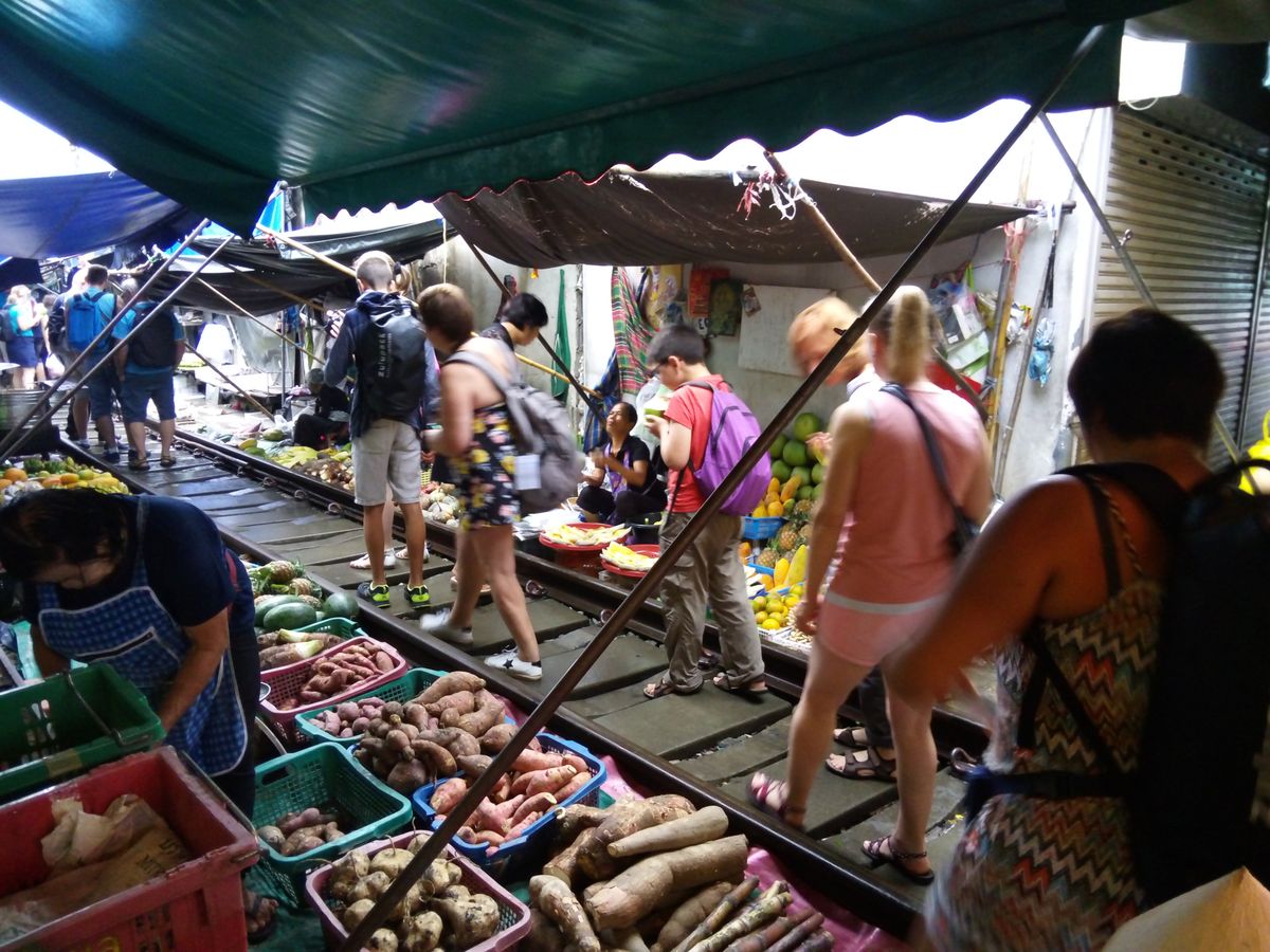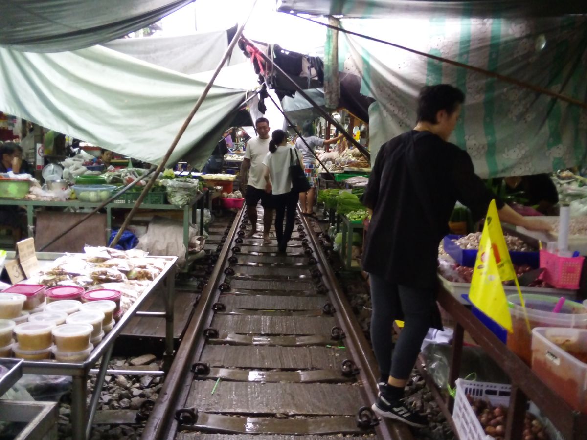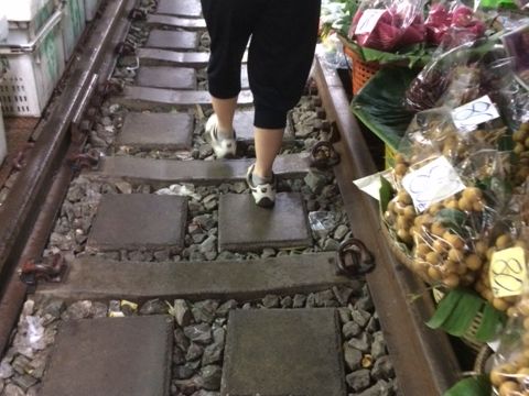 ほぼほぼ一番乗りで市場に着きガイドさんに案内されながら線路脇に並んだ市場を見学