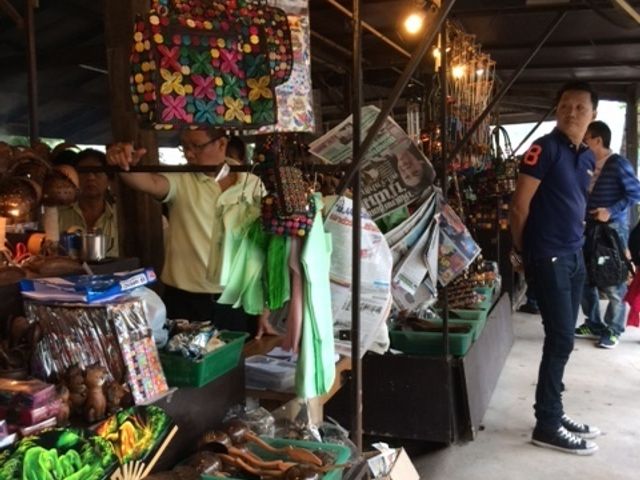 その後、水上マーケットへ。暑い中でのモーターボートは風邪を受けて心地よく、ちょっとしたリバークルーズ気分も味わえました。マーケットは思っていたよりお店が少なくコンパクトにまとまっていました。