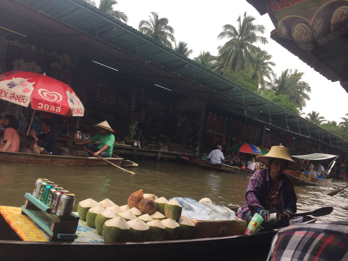 まず初めにココナッツファームの見学に行き、次に水上マーケットに行きました。