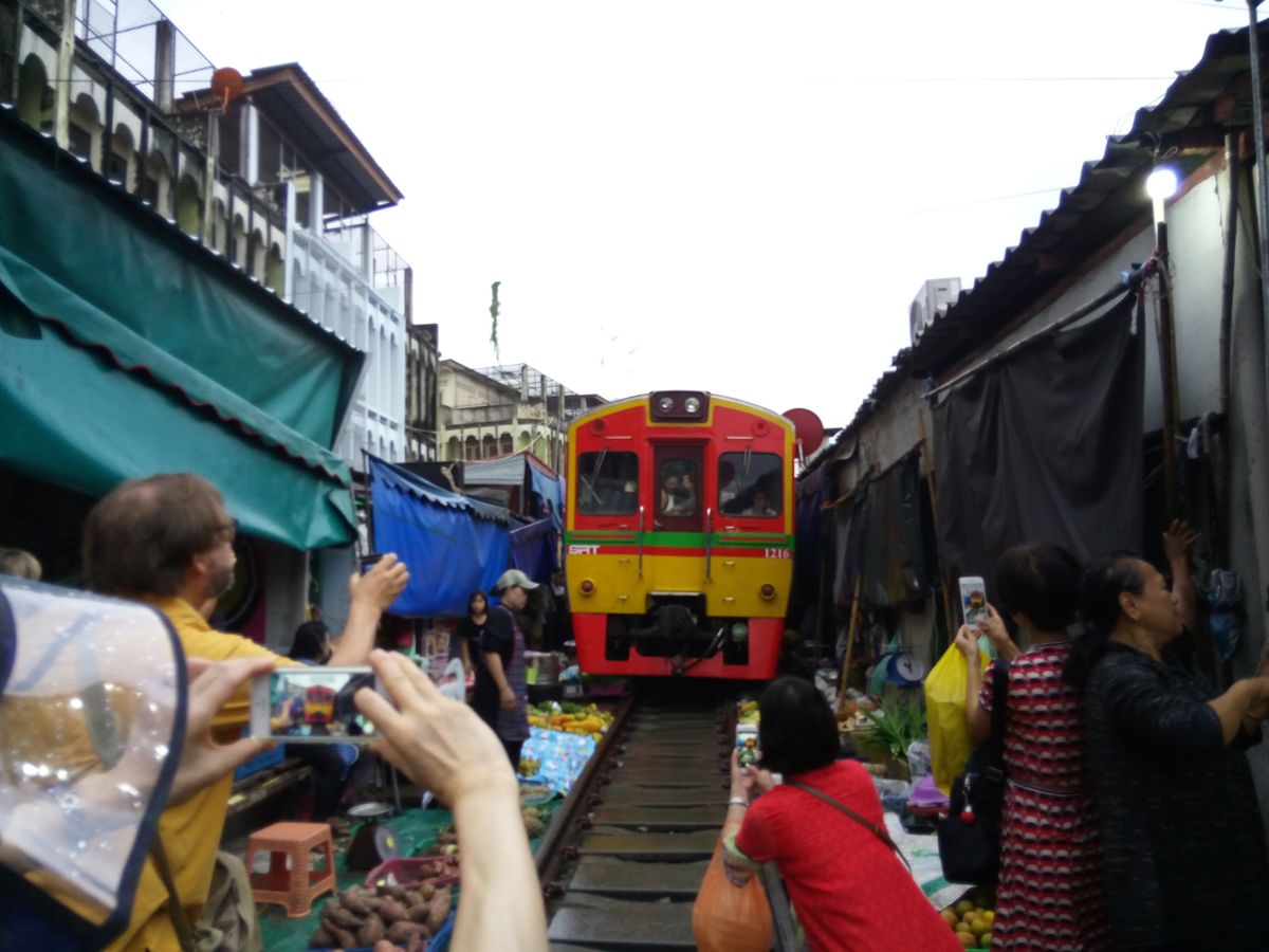 当初は、列車を乗り継いで、メークロン駅まで行く計画を立てていました。