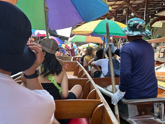 水上マーケットは舟が多すぎてかなりの修羅場。前に進まないし、おそらく舟をこぐおばちゃんと店のおばちゃんは顔見知りで、船をかき分けてでも意地でもこの店(この船)には停めるという無言の意思を感じたw民芸品とかをここで買うよりは、飲み物や食べ物を売ってるところの方が購入しやすいのだけど(頼めば停めてくれるとは思うけどそこまで欲しいわけじゃなかったから何も言わないと)その類は完全スルー。。。面白いのだけど市場としてのお買い物は陸上のお店の方がしやすいと思われます。