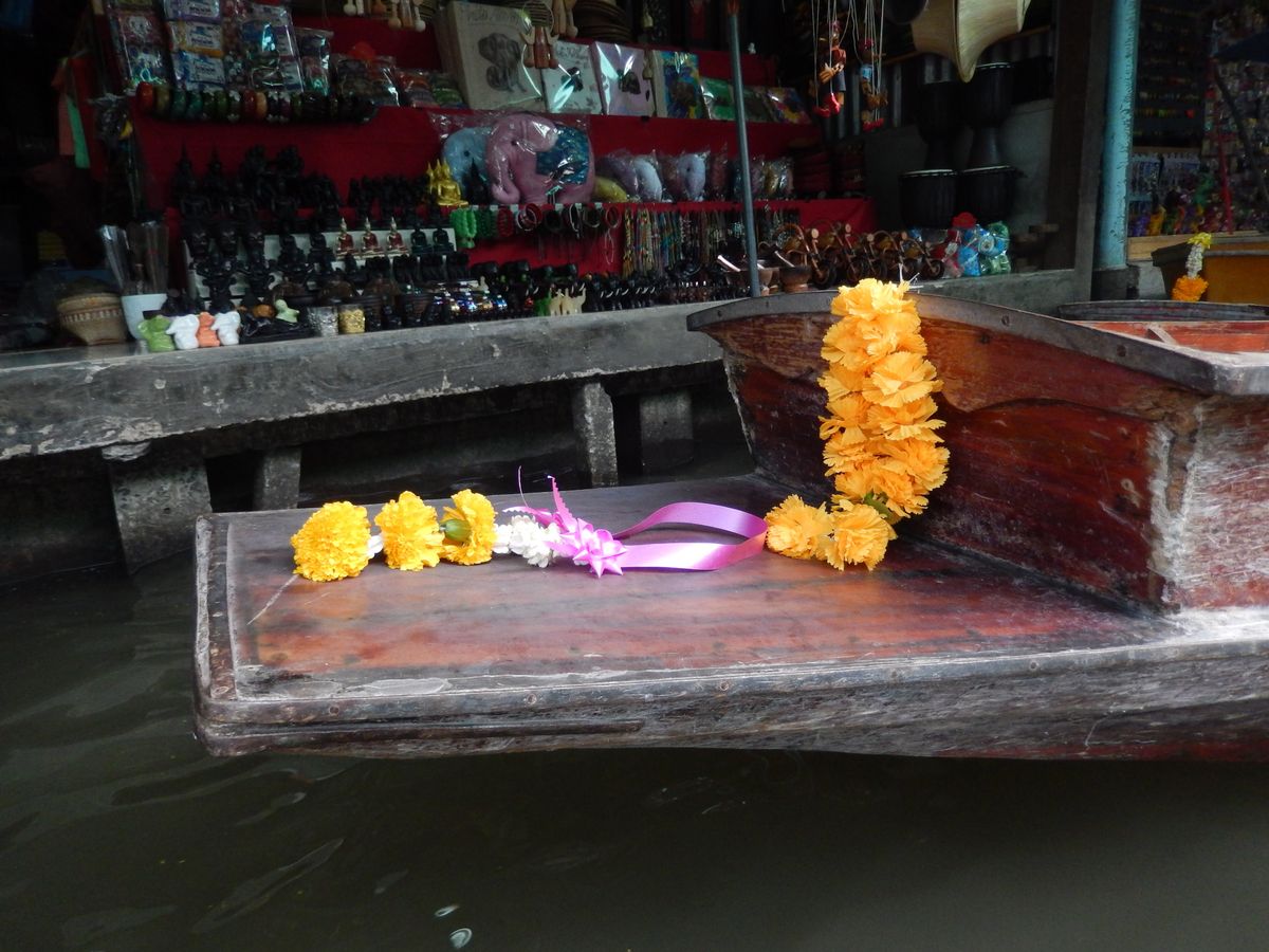 水上マーケットでは、おばさんが舵をとる船に乗るのは別途1人200バーツずつかかりますので、乗りたい方はお金を忘れずに!