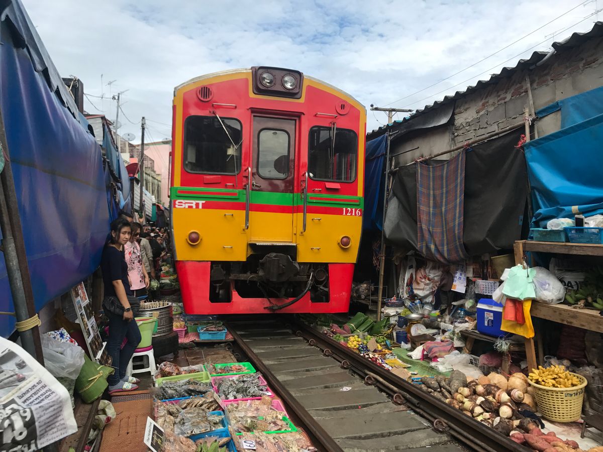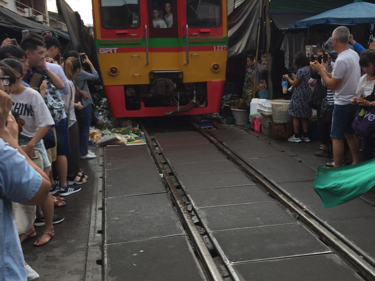 メークロンは観光客で溢れており、どこか良い撮影場所かわかりにくかったですが、電車をとても近くで見れて迫力がありました。