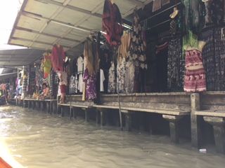 次に移動して水上マーケットへ。スピードボートで移動のため川での買い物はできませんでした。。
