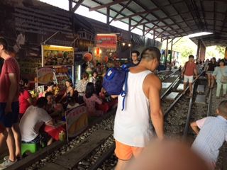 線路沿いを歩くことができ、線路の内側の両側には所狭しと魚や肉、野菜、果物、日用品などが売られていて観光客向け用?の少し綺麗なカフェがあったので小休憩できました。