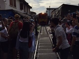 朝6時半にホテルにお迎えしてもらい、移動時間が1時間程あるのでバス内で眠れました。朝早く寝不足で辛かったですが、とても明るくて面白いガイドさんのおかけで眠気も覚め楽しむことができました!鉄道市場では線路上を歩きながら両脇に並ぶ市場を見た後、ベルが鳴りいよいよ電車が来ました。電車通過の際は、観光客でごった返していて大変でしたが何とか見ることが出来ました。続いての水上マーケットでは手漕ぎボートに乗るには追加で200バーツがかかります。でも非日常的な体験が出来て満足です。昼食はラーメンとアイスでしたが、ラーメンが思ったより美味しかったです。ガイドさんが沢山写真を撮ってくれたり、市場のお菓子の差し入れをくれたりして有り難かったです!