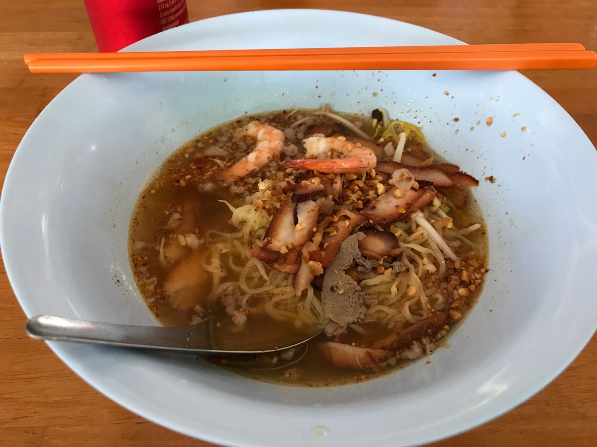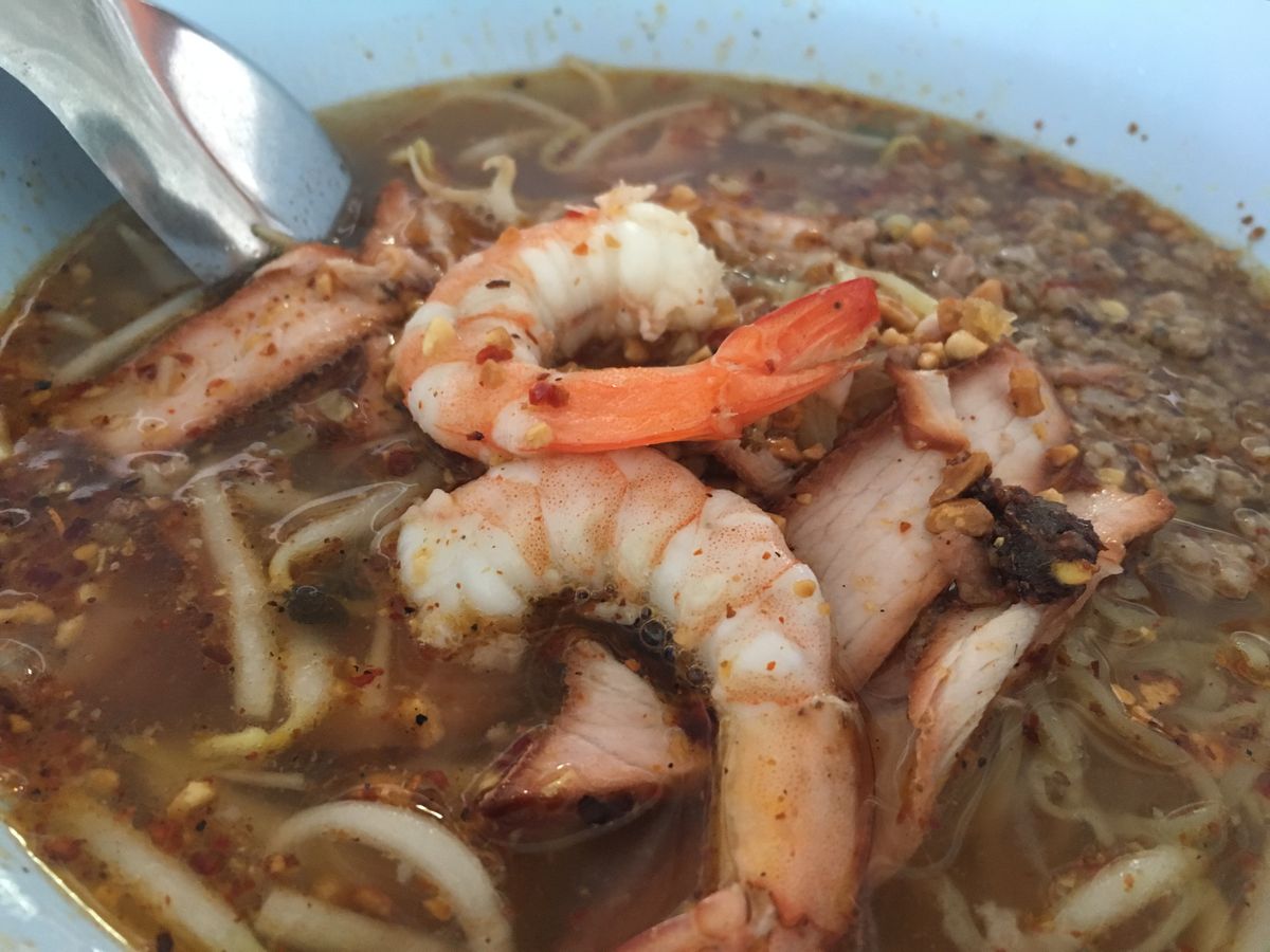 昼食はローカル感たっぷりのラーメン屋です。一杯50バーツなので、おかわりも余裕です。地元の方々がたくさん来られていることもあり、とても美味しかったです。辛くないラーメンもあるので、苦手な人でも充分楽しめるはずです。