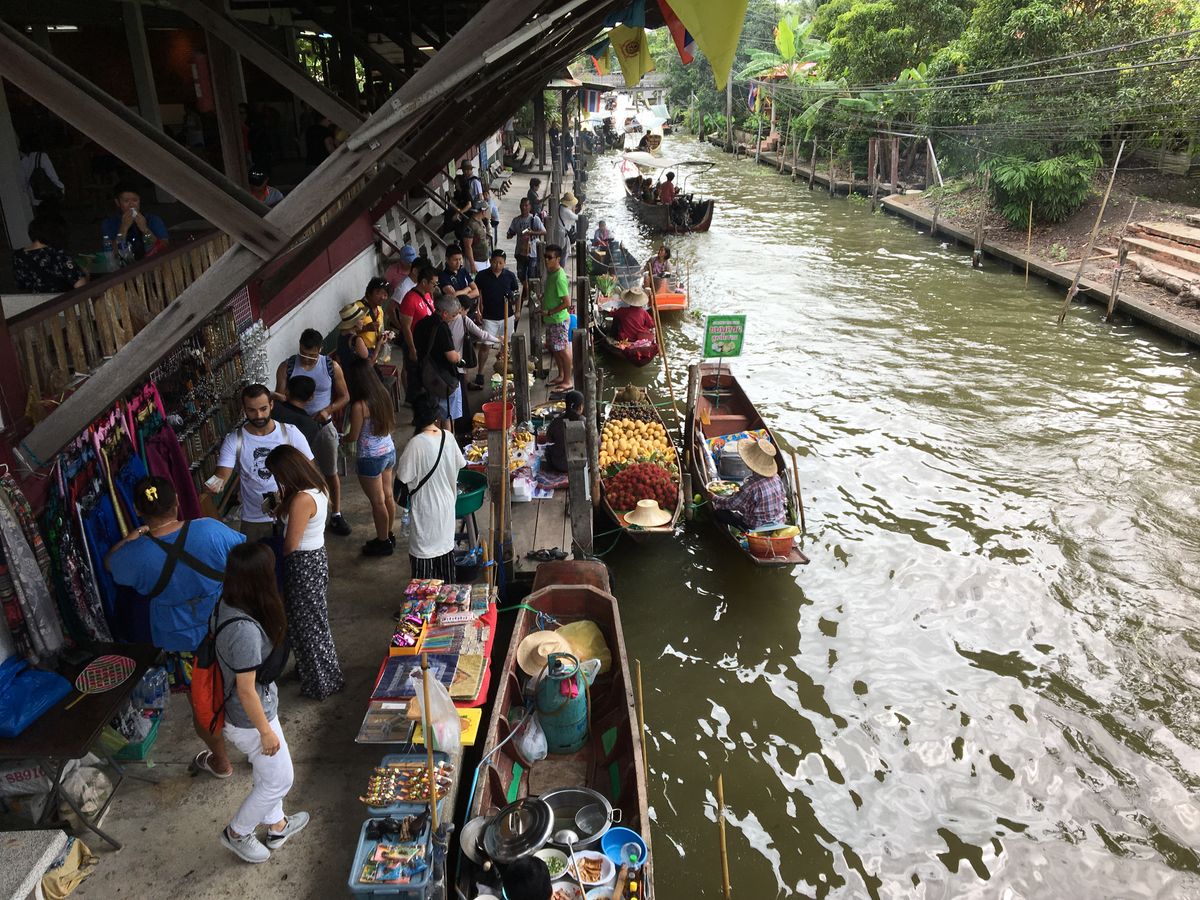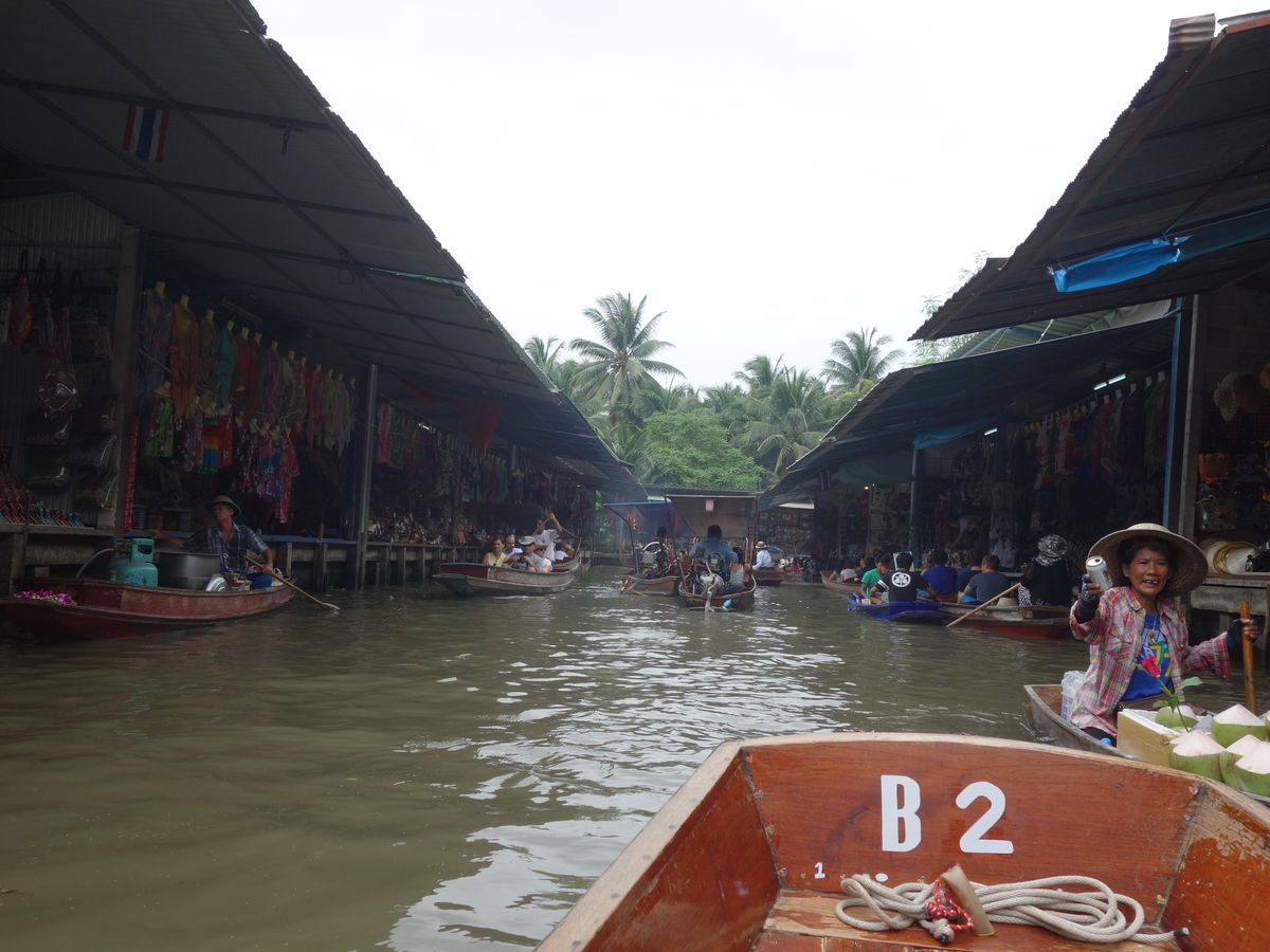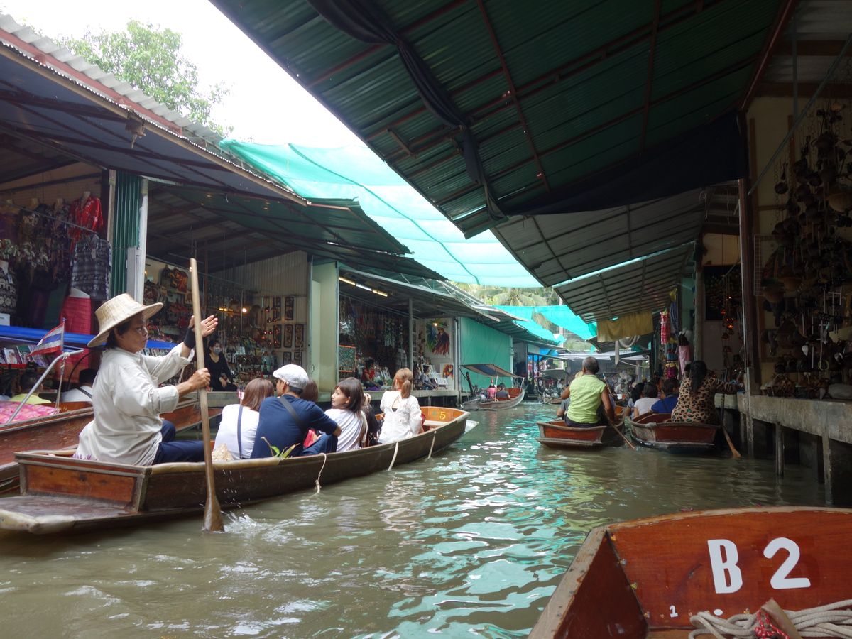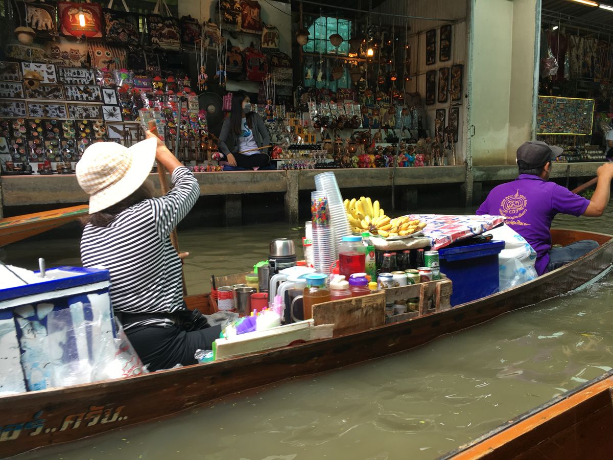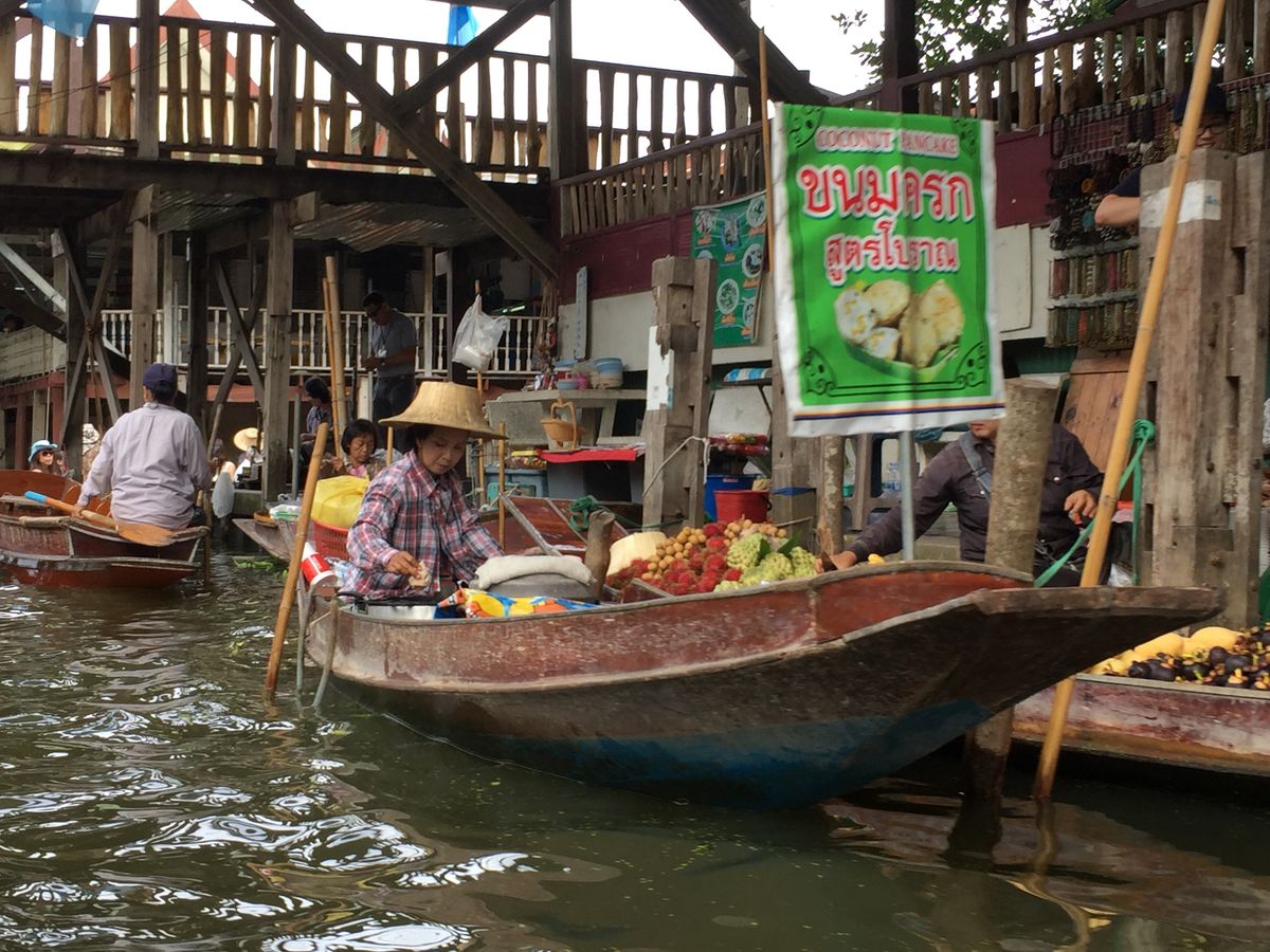 水上マーケットは手漕ぎのボートは別料金でしたが、船頭さんがずっと「上を向いて歩こう」を口笛で吹いてくれて、いい想い出になりました。