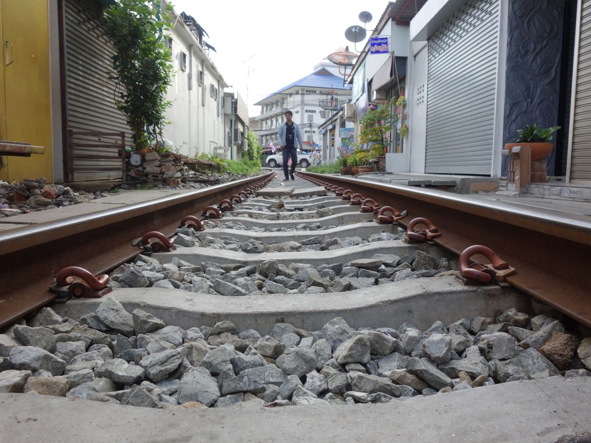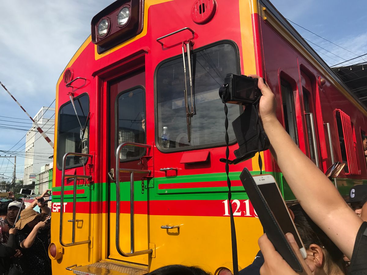 朝早かったにも関わらず、線路市場は観光客がたくさんで、電車が来る時間にはみんなが写真を摂りたくて、めちゃくちゃのごちゃごちゃでした。これは自撮り棒必須かもです。人ごみに押されて、手を伸ばしただけでは、電車が撮れないかも。
