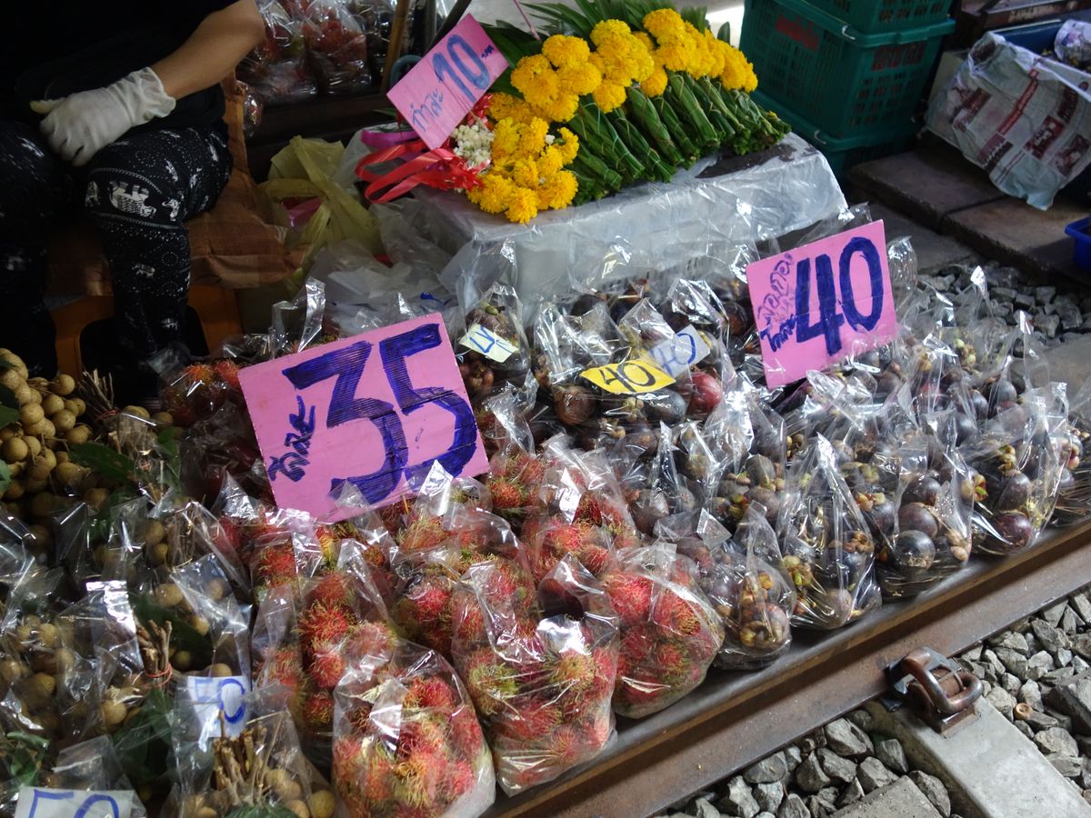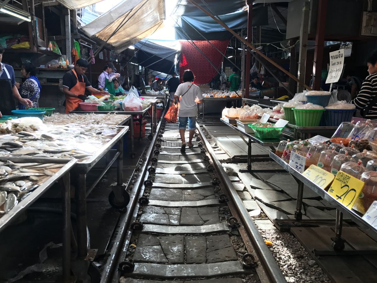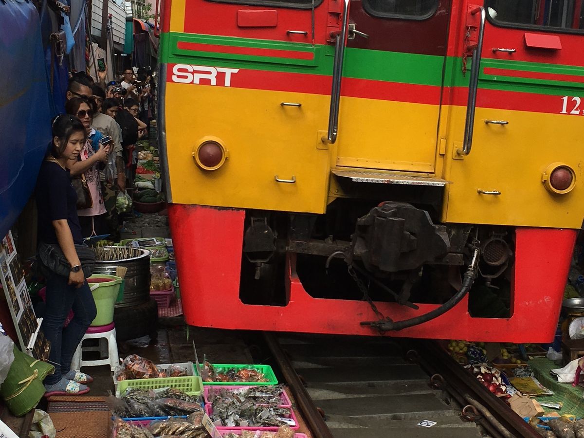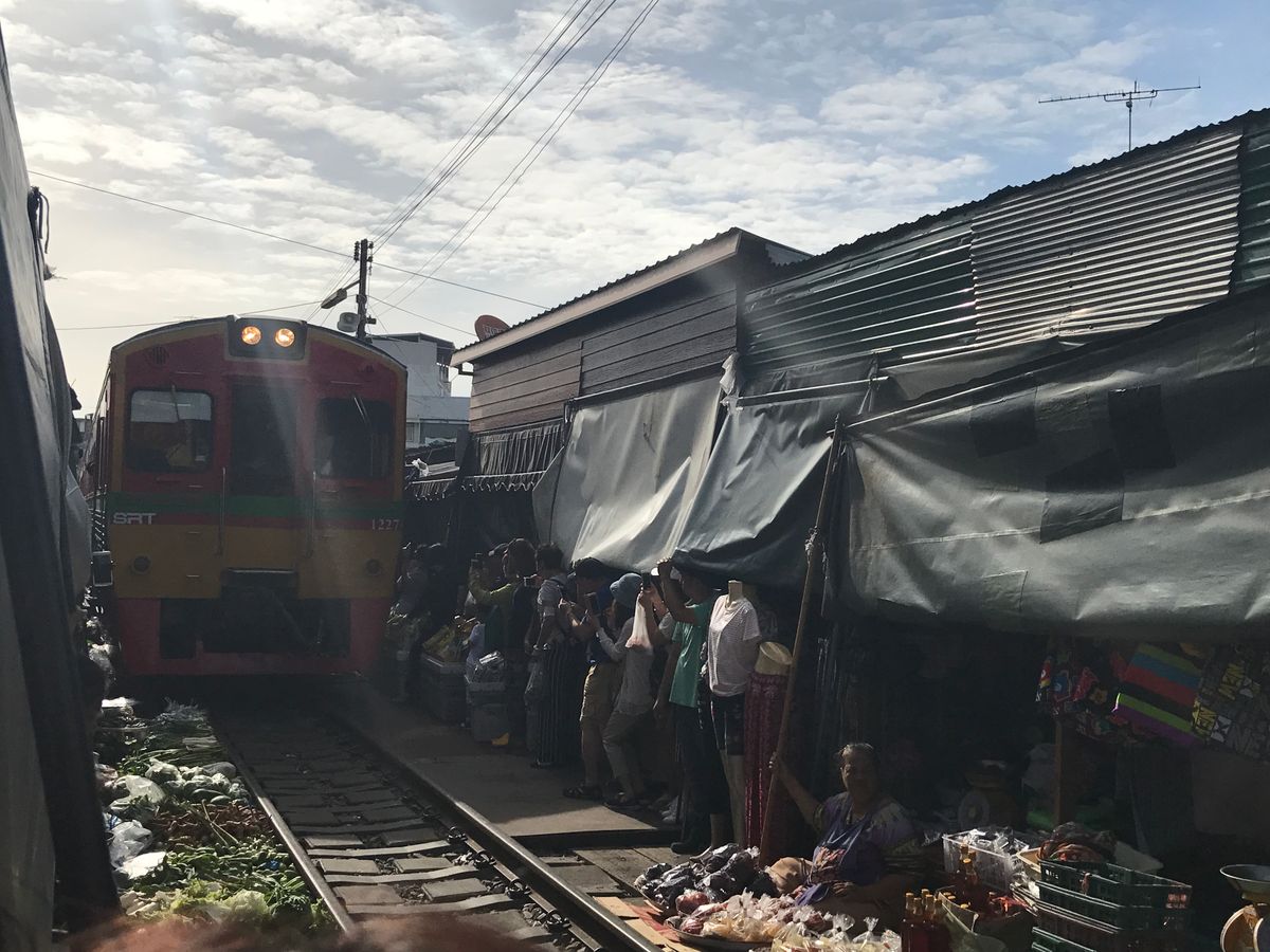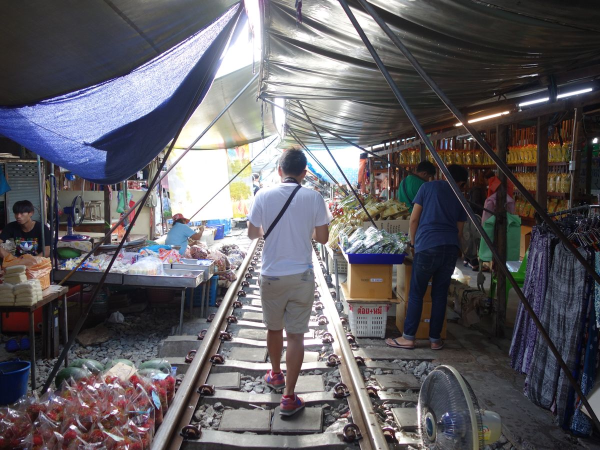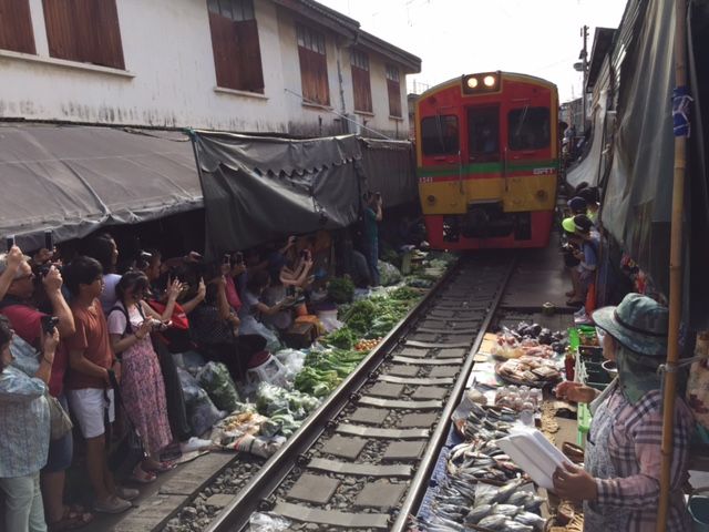 早めに到着してくれるので、人が少ないうちに写真を撮って、線路市場を満喫出来ます。市場はバンコク市内とは違ったローカルな雰囲気を満喫出来ます。市場が片付いてから、すぐに元通りになる様は魅力的です。