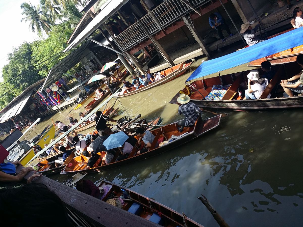 水上マーケットは、観光客向けと聞いていましたがそれはそれで雰囲気もよくボートの速さも迫力があり楽しめました。私たちは追加でお金を払い水上ボートに乗りマーケットを見学しました。少しでも気になった商品を指差すとすぐに買わされそうになるので注意してください。しっかりと断れば買わされることはありません。追加でお金を払い雰囲気を味わう価値は十分にあると思います。同じ参加者の方も払っていました。このボートに乗らない場合は時間を潰すのが大変かと思います。ちなみに、ココナッツの見学?についてははじめから興味がなく、また同じ参加者もつまらなささうにしていました。なのでトイレに寄ってすぐにバスに戻りました。