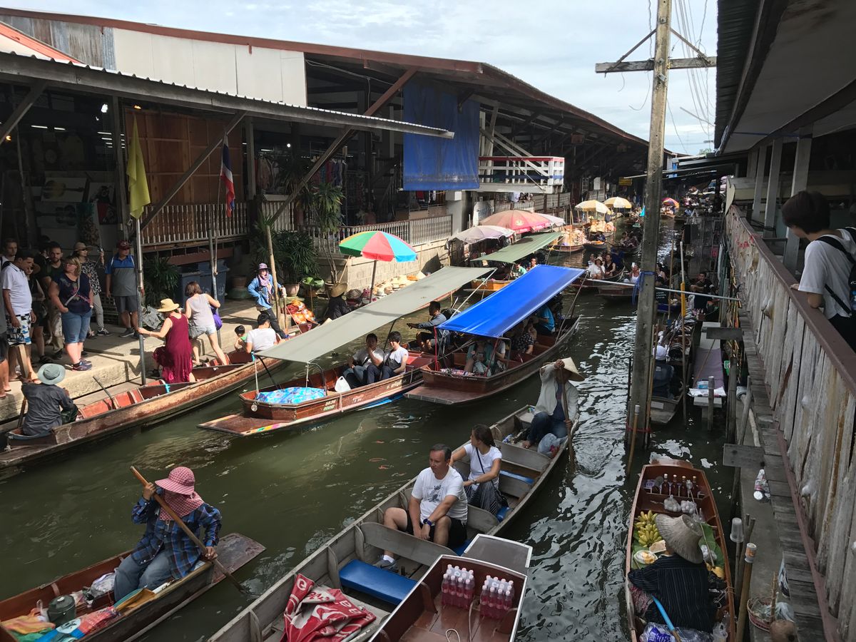 テレビで見て、絶対に行きたい!と思っていたメークロン市場!ホントに線路に市場があり、電車の通過に合わせて片付ける姿が見れました!観光地化しすぎて現地の方はたいへんだな、、、と思いました。水上マーケットも雰囲気がありよかったです!