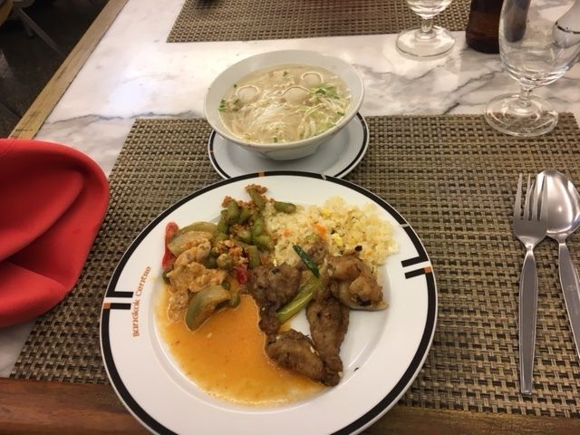 ホテルのランチビュッフェは期待していませんでしたが、タイ料理が苦手な人でも食べられる料理もありました。味も美味しかったです。席はツアー参加者と相席になります。仲が良くなれば楽しいと思います。私たちの場合は話がはずみおすすめのおみせやそれぞれの旅行について会話を交わしました。