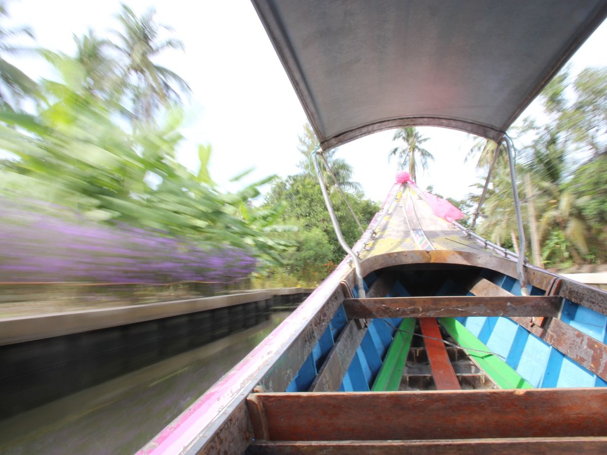 水上マーケットへのモーターボートでの移動が結構スリルがあります。
