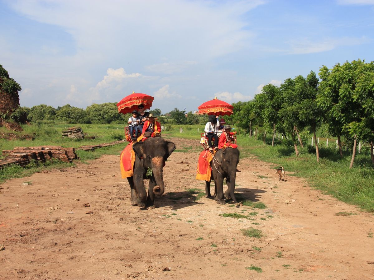 アユタヤはやはり世界遺産、素晴らしいです。しかしとても暑いですね。お水は必須です。象乗りは街の遺跡近くではなく少し離れた場所でした。園内を回る感じで、街の中を歩けなく少し残念でした。