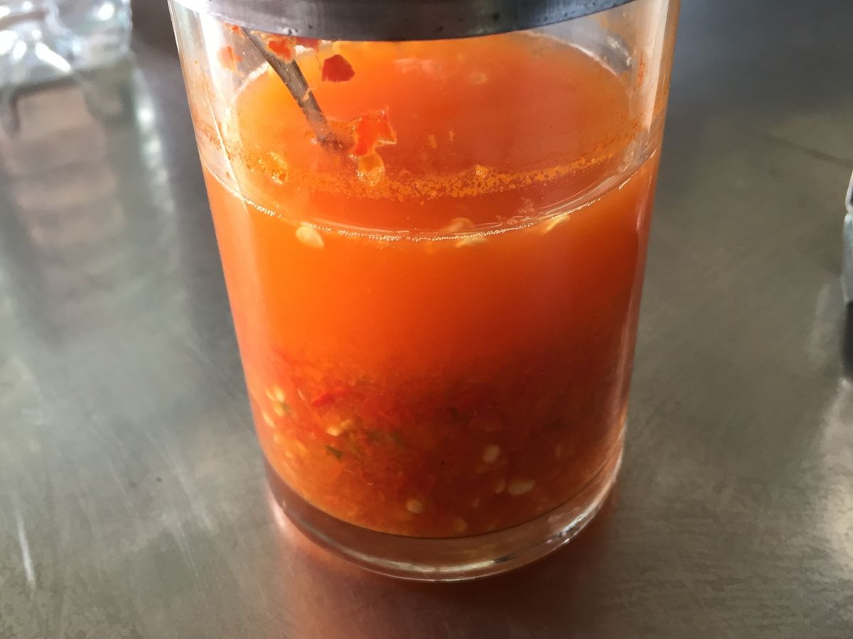 テーブルに置いてあった赤いチリソースのような見た目の香辛料…最高でした。