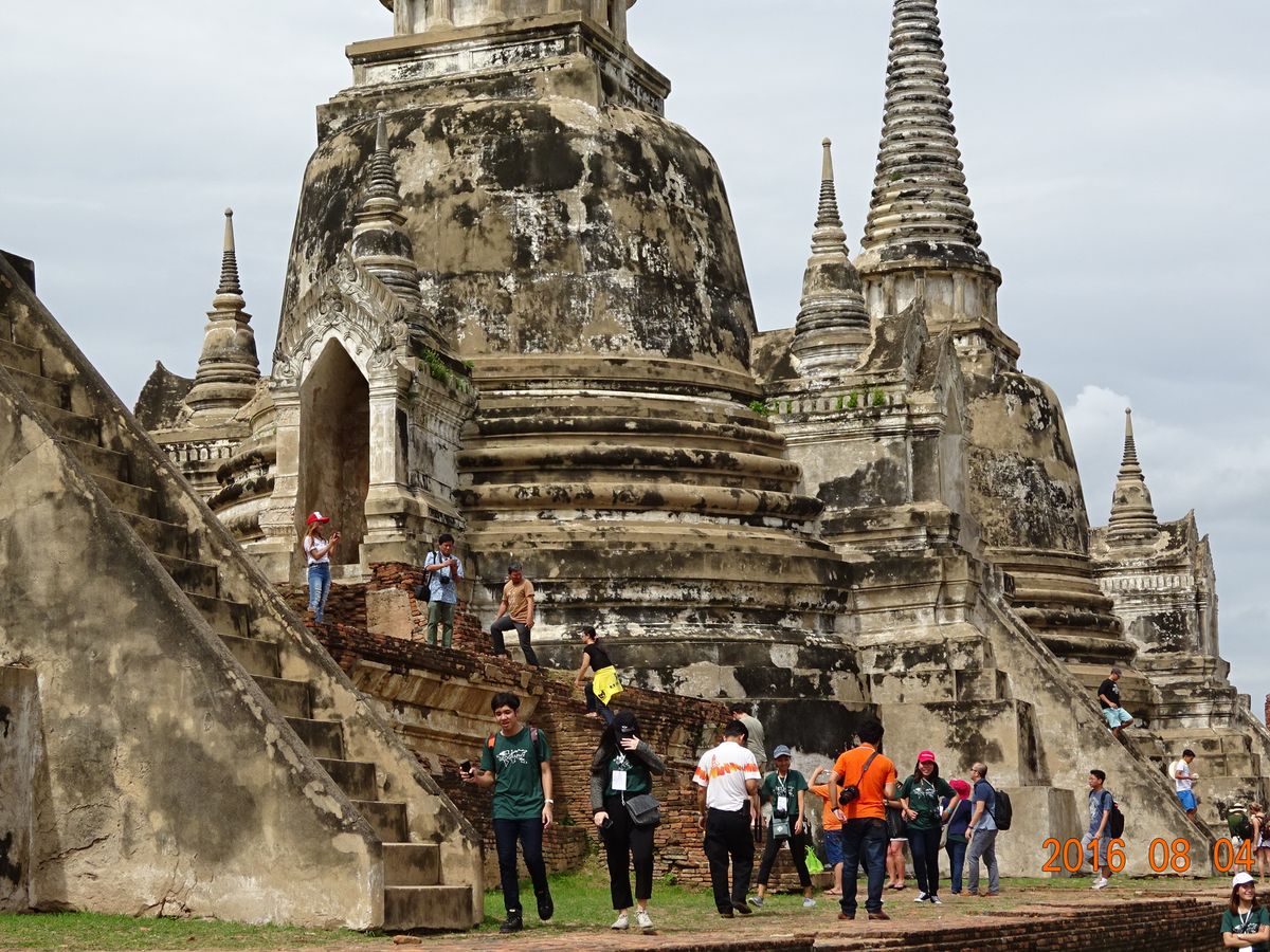 ガイドさんの遺跡の説明もわかりやすく、タイの歴史を知ることができてより充実した時間でした。また、移動時間も1時間半〜2時間と寝ていればすぐに目的地にたどり着けたので、自分たちで行くのもミッション感があり楽しいですが、その分時間と体力を使うことを考えれば、短い時間を有意義に使えたのでツアーを利用してよかったです。また参加者とも仲良くなり、訪れた先の話がきけたこともよかった点です。アユタヤの遺跡をまわる際、とても暑いので随時ずいぶん補給は必須です。水上マーケット では、写真で見るような場所に行くためには、プラスαで200B払って手漕ぎぶねに乗る必要がありますが、乗った方が絶対に楽しいです。水上マーケットに行くための水上バイクに乗るのですが、その際途中で写真を撮ってくれるおじさんがいます。その写真がのちのちかわいい写真たて付きで150Bで売っているので、結構思い出になると思います。私が泊まったホテルは、バンコクセンターホテルでそこまで送ってくれたので楽チンでした。