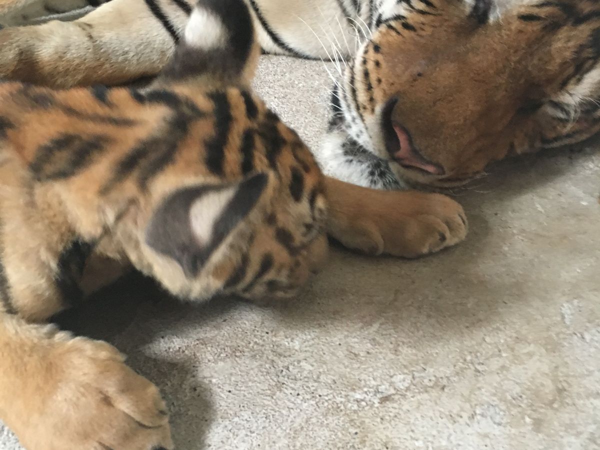 象乗り場の隣で、トラやライオンの赤ちゃんと写真を撮ることができ、これも貴重な体験で、すごくよかったです。それぞれ100バーツです。トラの大きさにびっくりしました。