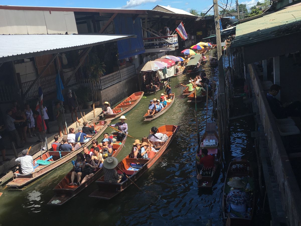 一度はテレビで見たことがある電車が市場を横切る光景と、タイといえばの水上マーケットを1日で回れるツアー。