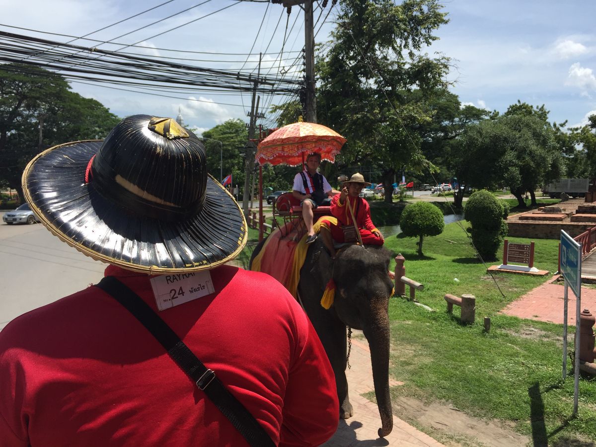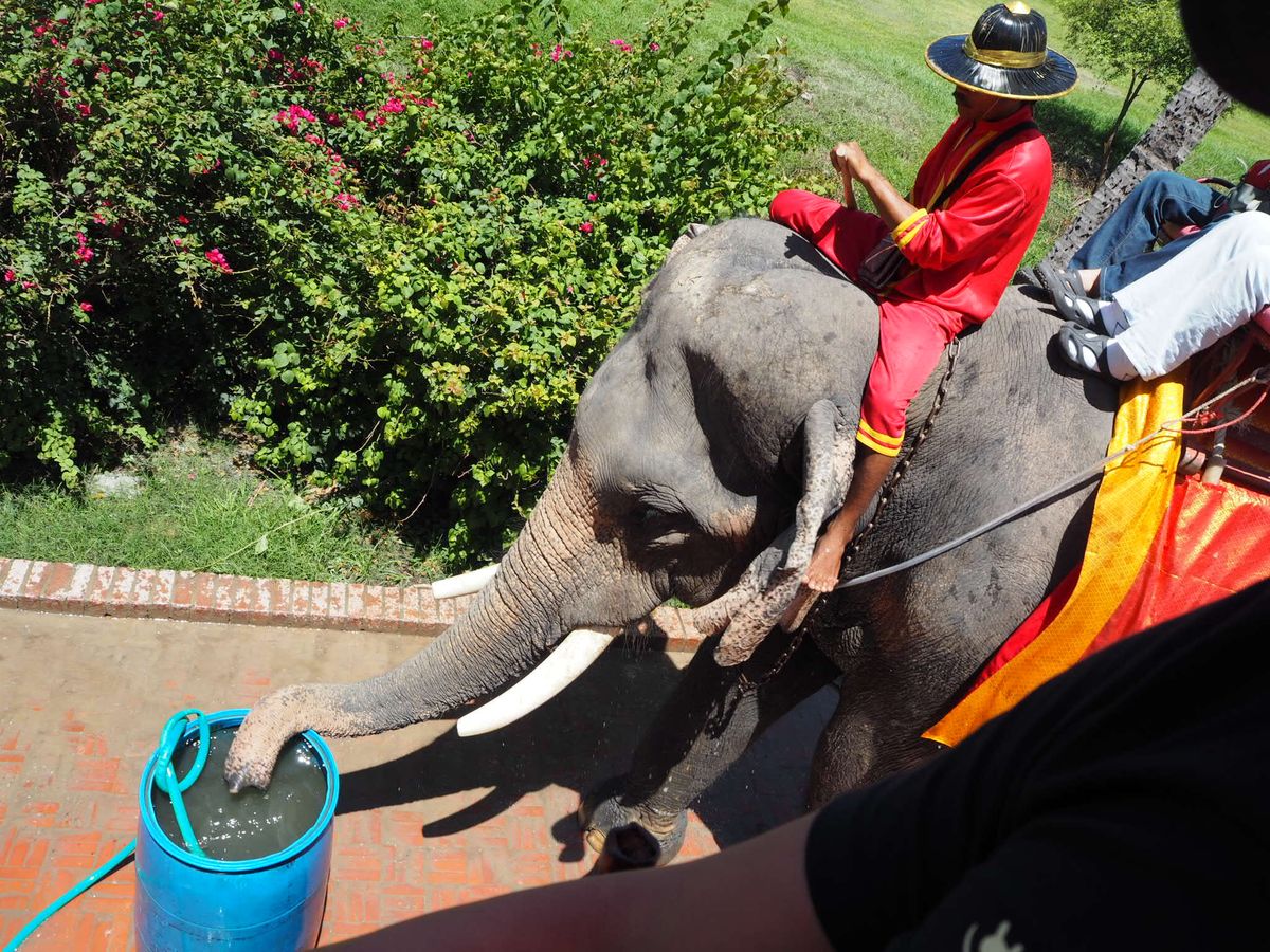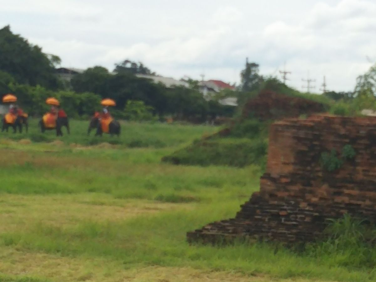 アユタヤでの象乗りは、遺跡のすぐそばで乗っているものをイメージしていたのですが、実際は少し離れた象乗り専用の場所(?)でした。象に乗って、すぐ隣の遺跡(?)の周りの草むらのようなところをのんびり歩いて、元の乗り場に帰ってくる感じで、乗っている間に大した景色は望めませんし、水に入ったり、ワイルドなところを行くのを期待している方には向きません。
