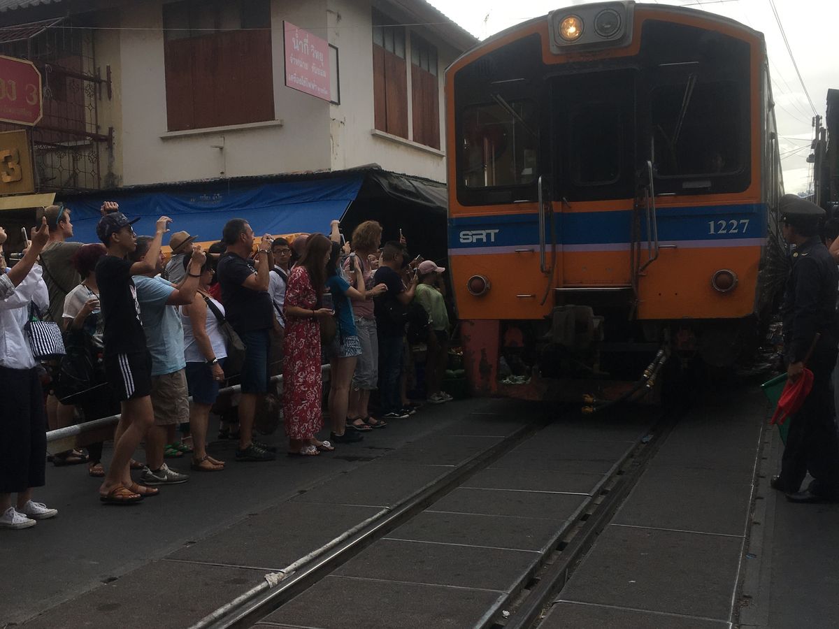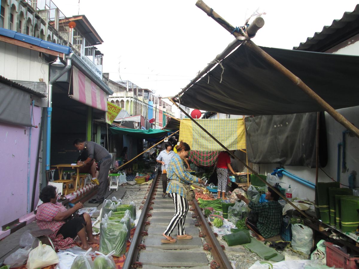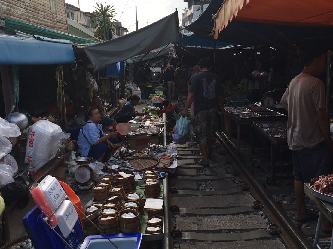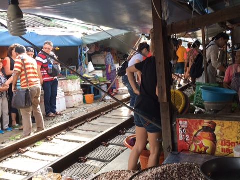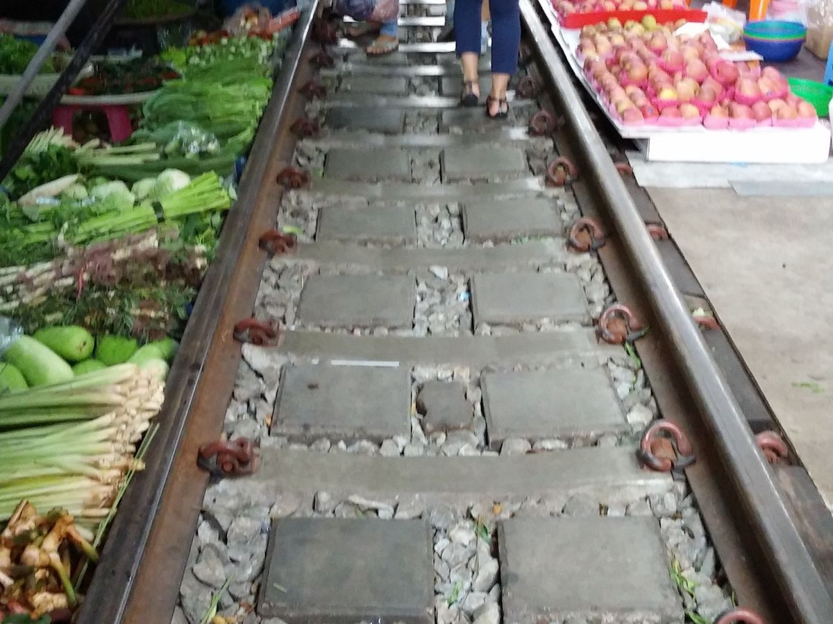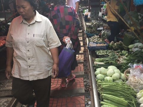 列車通過予定時刻まで45分くらいあったのですが、ずっと線路を歩いたり、線路の横の市場を見ていたりしたら、時間が足りないくらいでした。売り場は肉や魚など、かなり生臭い場所も延々とあるので、それは覚悟しておいた方がいいと思います。列車は時間どおりに通過しました。通過前にアナウンスが入り、お店がパタパタと片付けられていき、目の前を列車が通り過ぎ、また列車通過後にあっという間に店が元通りに戻されていく光景・・短い時間ではあるけど、実際に見られたのはいい思い出になりました。