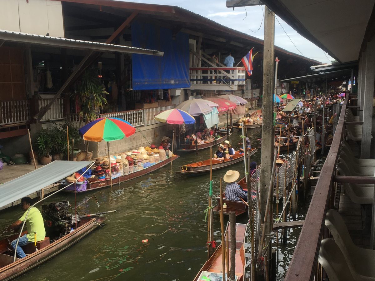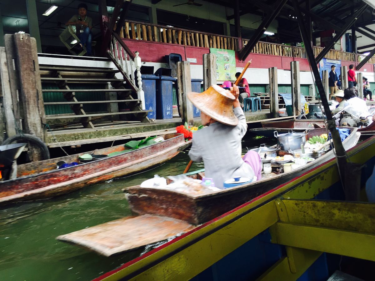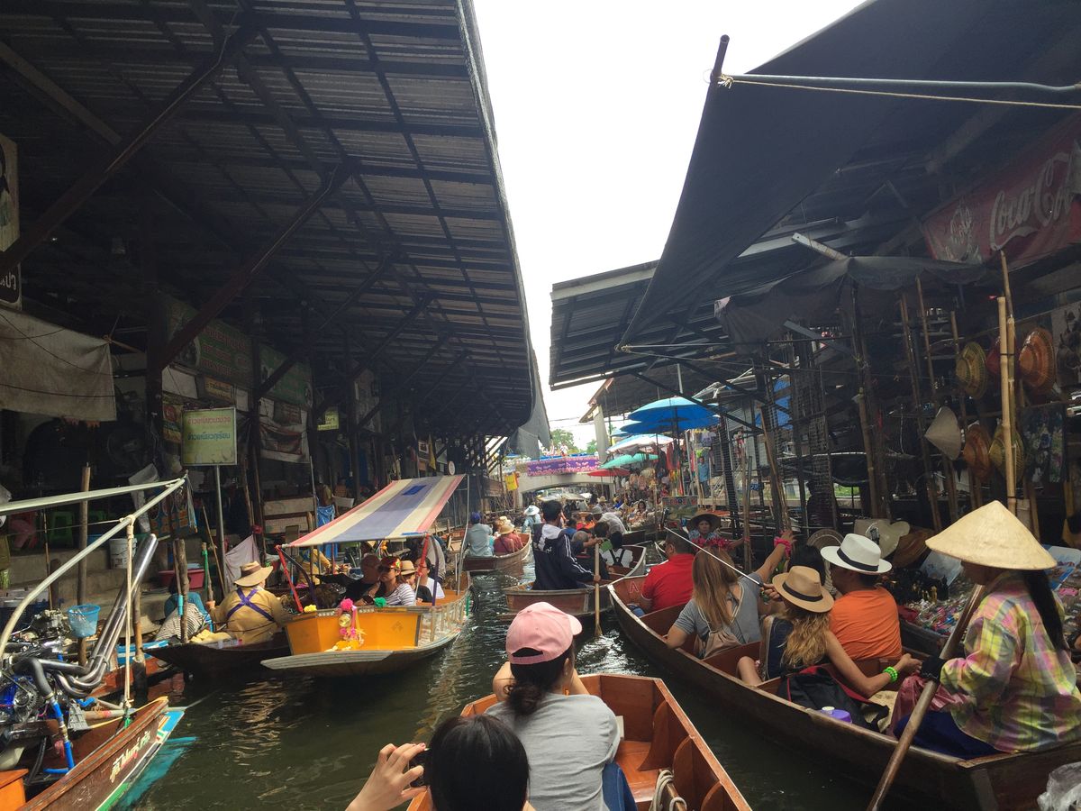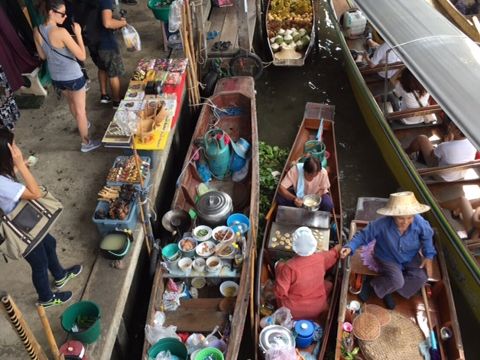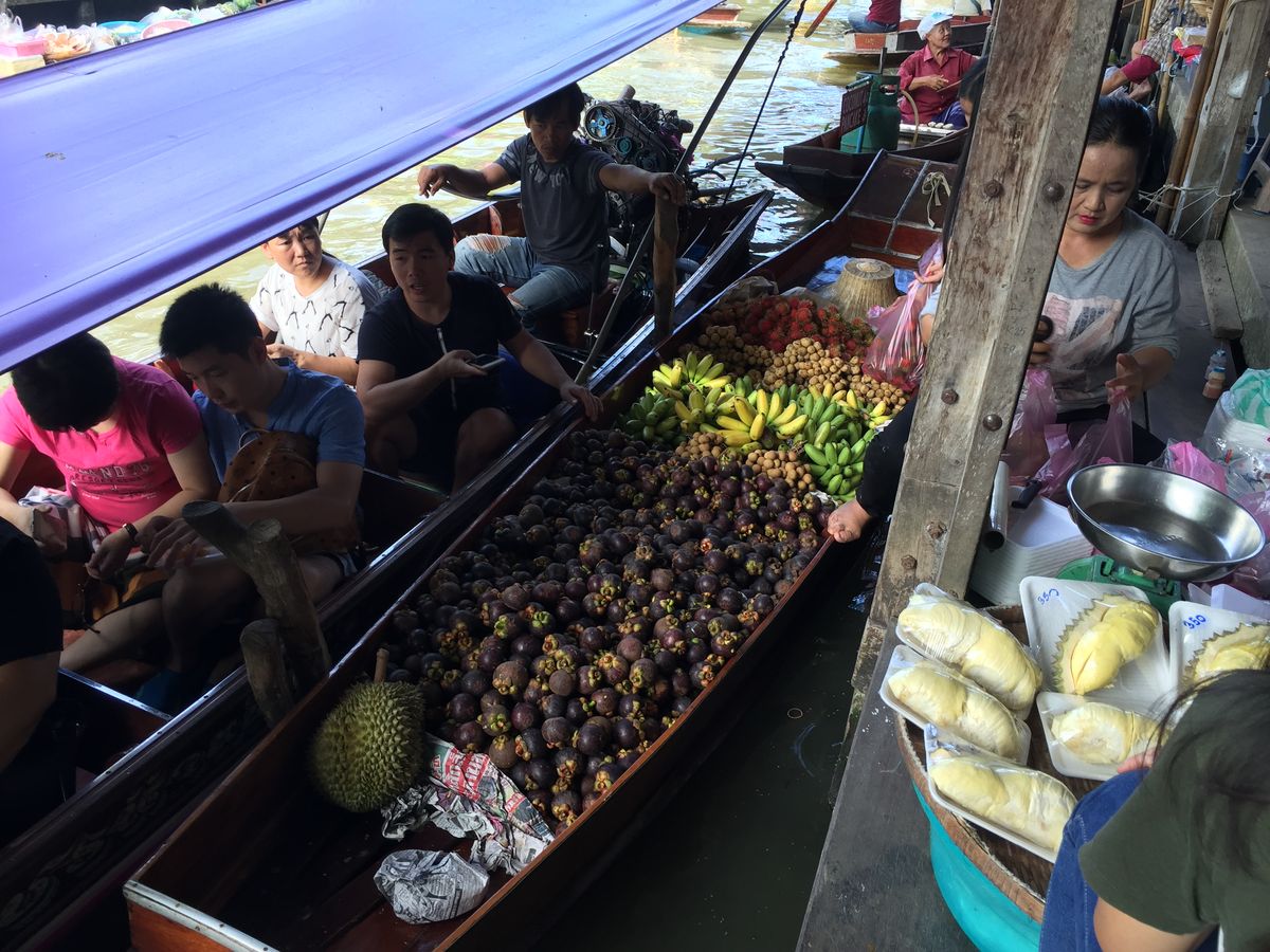 水上市場は、ちょうど団体が集中する時間で、運河の交差点で船が大渋滞、ゴンゴンぶつかりながら進んでいくのも面白かったです。船自体が立派なアトラクションでした。