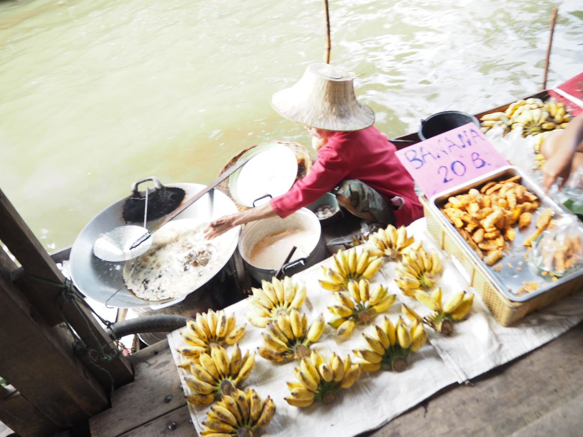 水上マーケットは2度目の経験でしたが、観光化してるとはいえ、独特の光景で面白いですね。小舟は200バーツで乗れました。暑いけど、乗った方がより楽しめると思います。何も買わずに見てるだけでしたが。