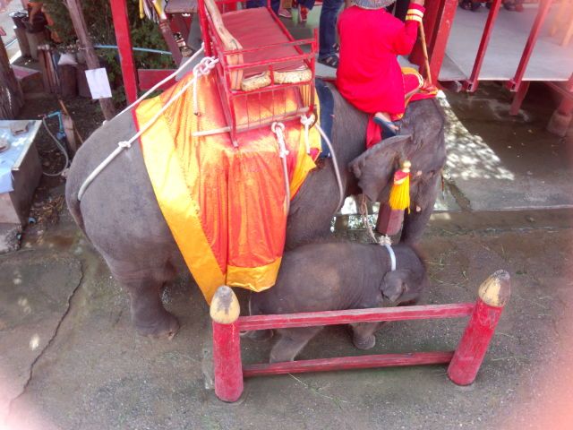象乗りの際に、小象を連れてお客さんを乗せて歩いている母親象を見て心が和みました。