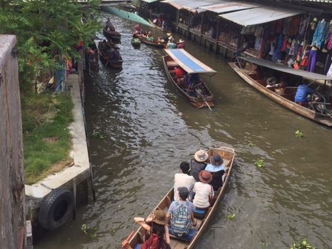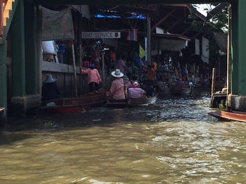 オプションツアーにして正解でした。水上マーケットまでは、バンコクから1時間半程かかります。手漕ぎボートは大混雑でしたが、ガイドさんに手際よく乗せてもらい、楽しかったです。
