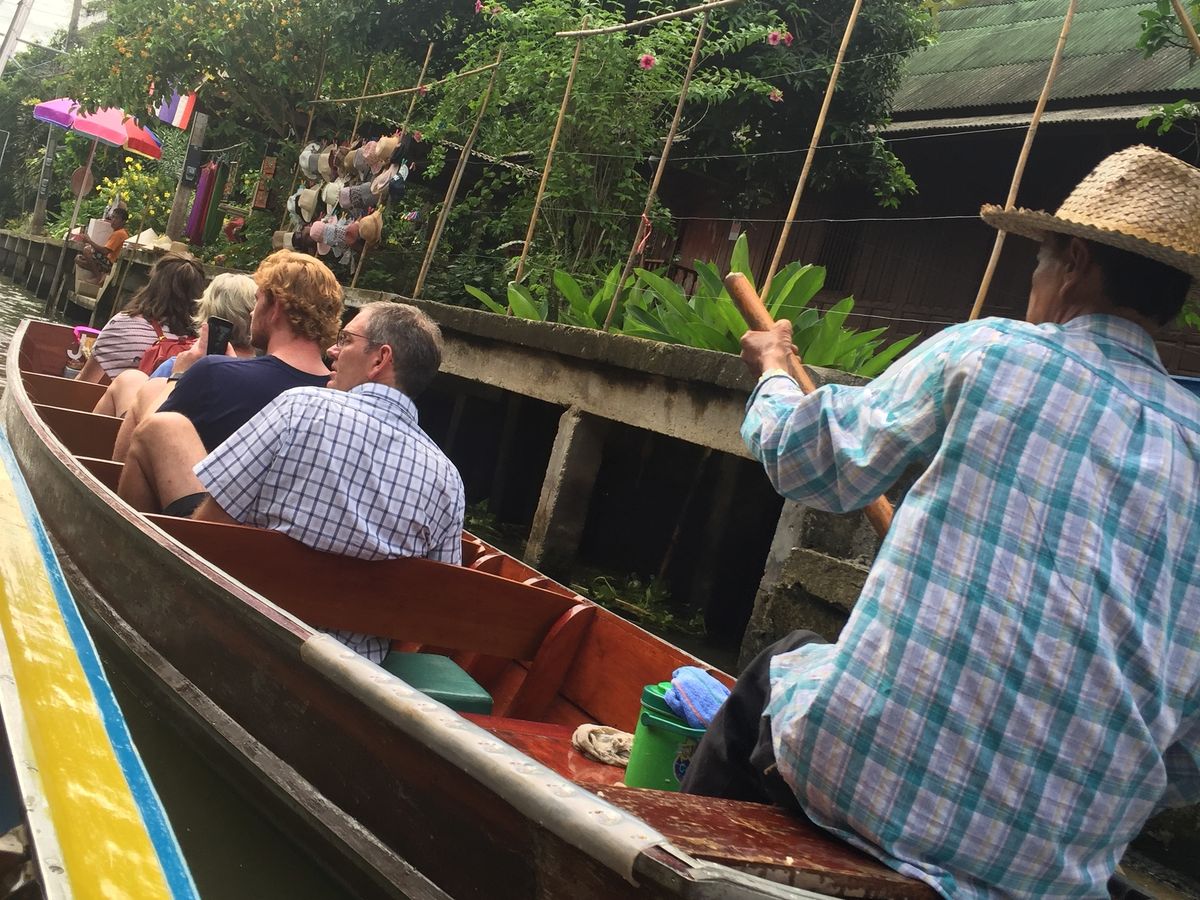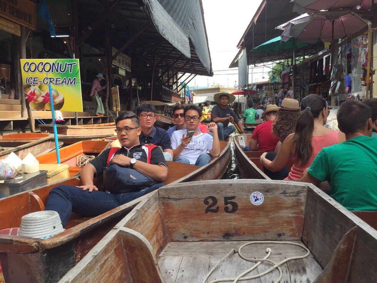 水上マーケットでは手漕ぎボートにも乗ることができましたが、ボートの渋滞がすごくて集合時間に間に合うがドキドキしちゃいました。