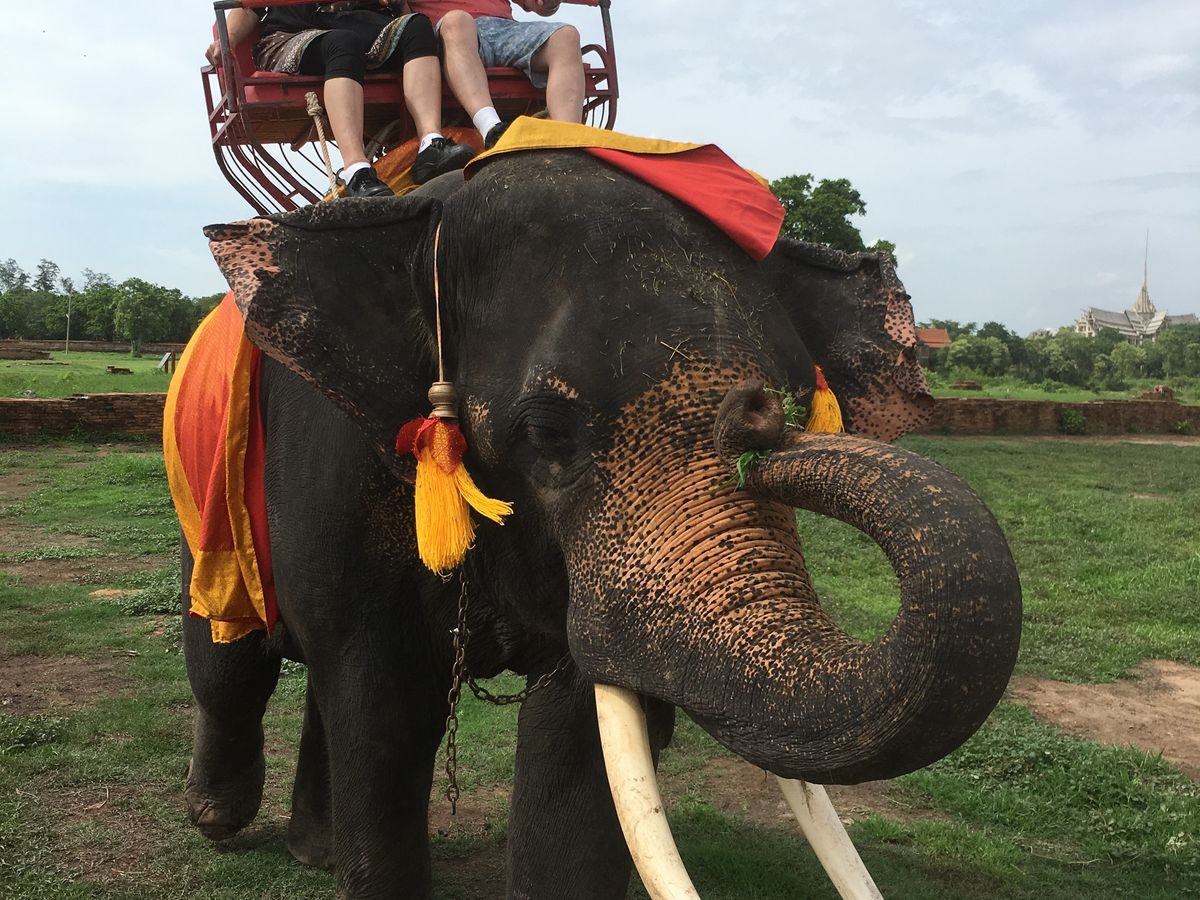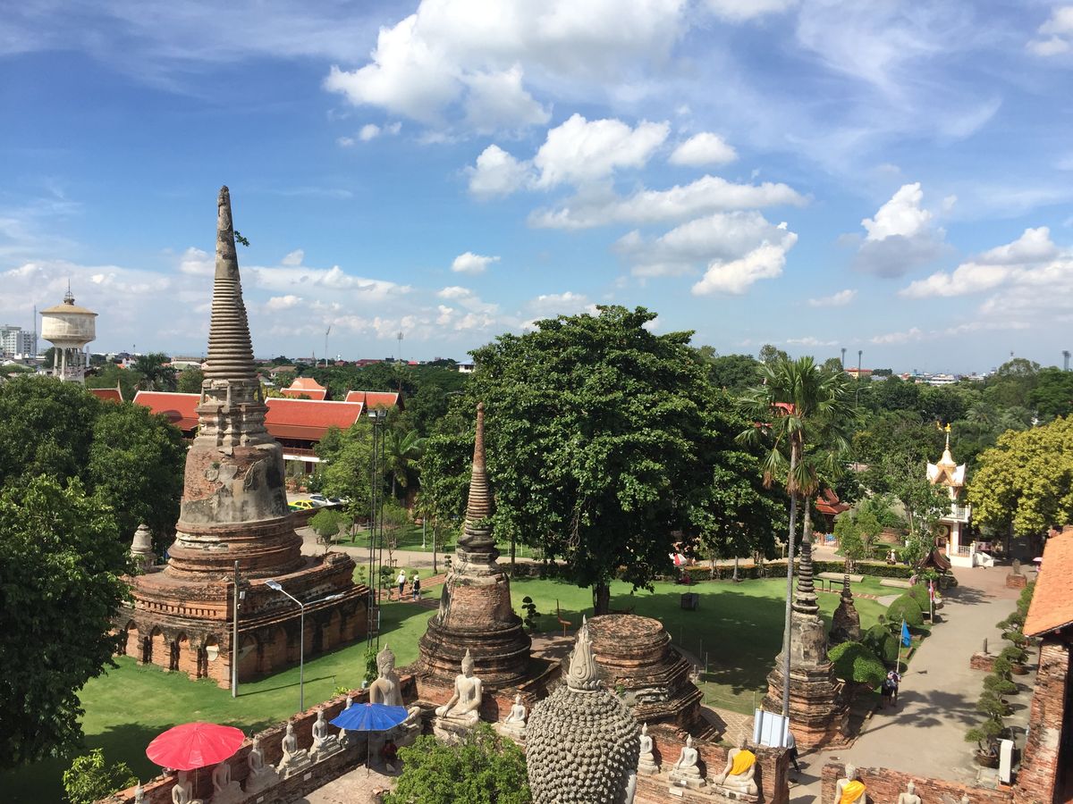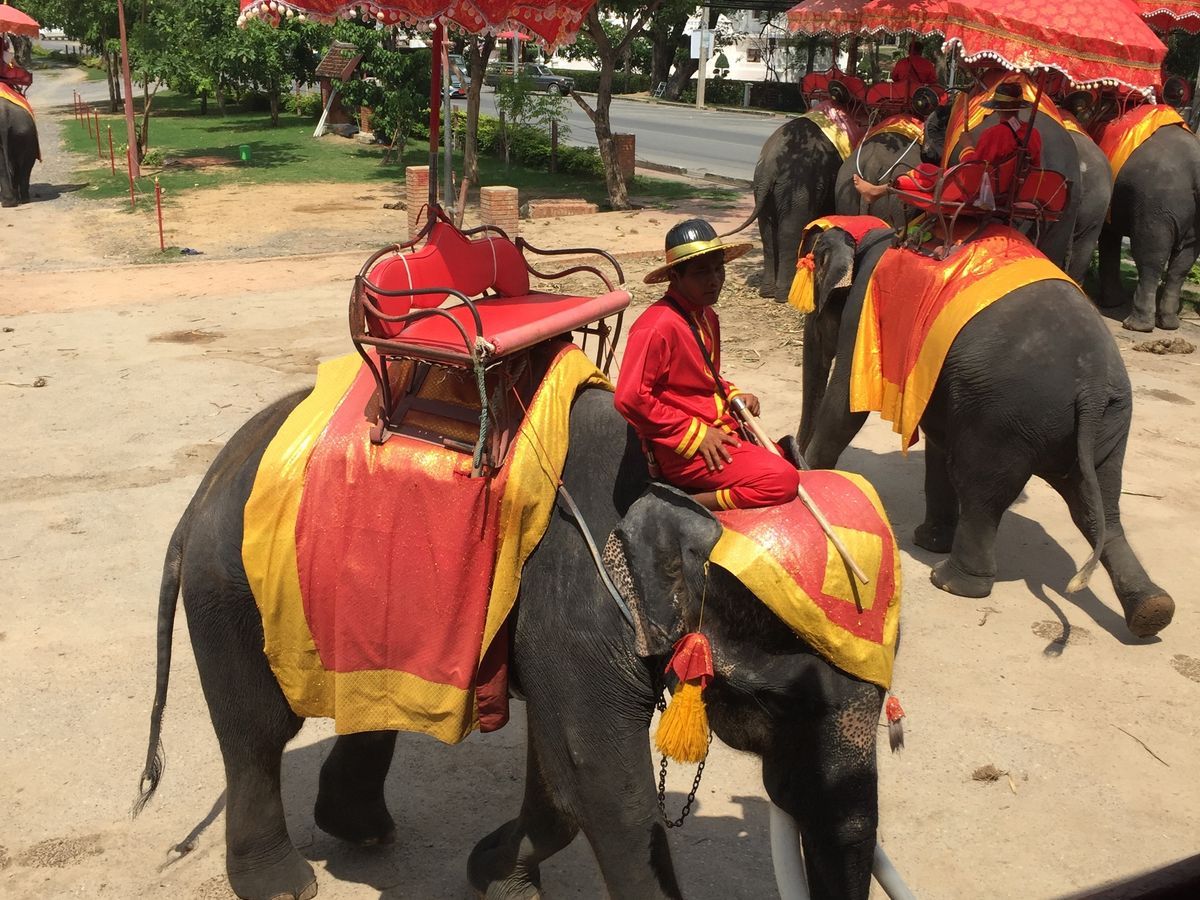 ガイドさんがすごく親切な人で楽しく観光できました。アユタヤの遺跡周辺は日陰が少ないので、ゆっくり歩いて見るのが大変でした。水上マーケットは写真で想像した感じで面白かったし、おまけの象のりがいい経験になりました。
