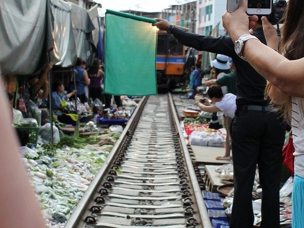 メークロン市場では市場が畳まれるところ、電車が通る瞬間をすごく近い場所で体験することができました。市場到着から電車が来るまでどんなものが市場で売っているか見る時間がなかったことが残念でした。。