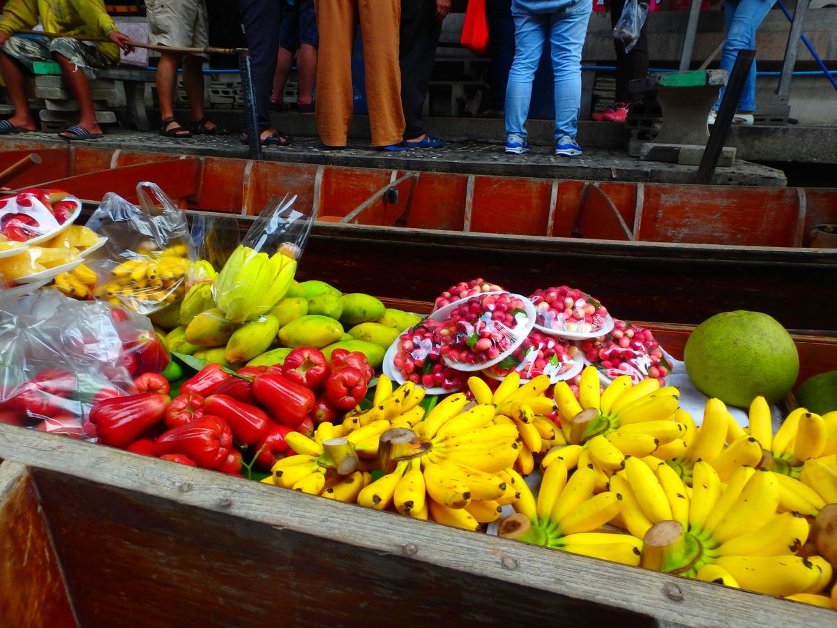 水上マーケットまでは、船着場から高速ボートで向かいました。風や水しぶきが気持ち良く、途中大きなトカゲを見ることもできました。とても楽しかったです。水上マーケットでは200バーツで手漕ぎボートにも乗れます。ボートの大渋滞でぶつかるんじゃないかとドキドキしたり、お店の人が手でボートを引き寄せるという力技で客寄せをしたりと、高速ボートとは違う楽しさがありました。