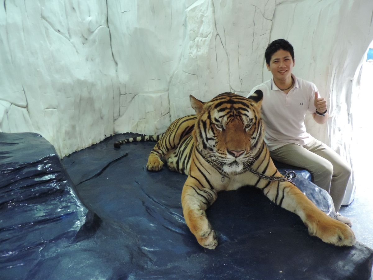 それと、なんと! トラと写真を撮ることもできました(≧∇≦)(1人200TBH)