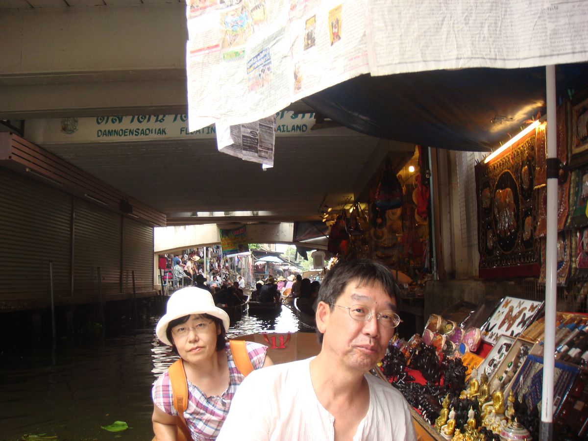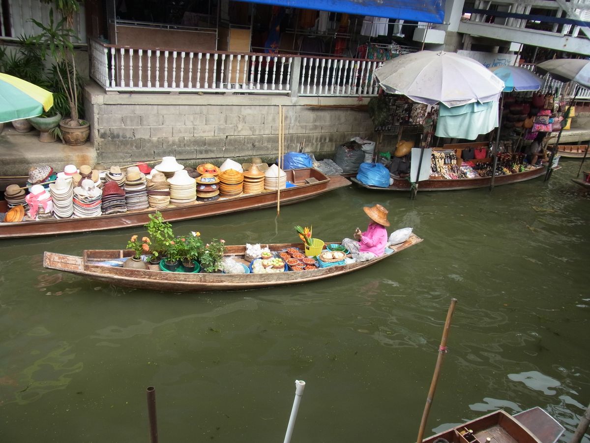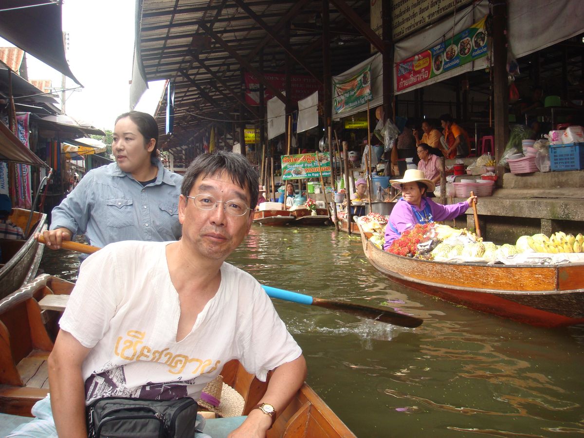 水上マーケットも、小舟に乗り換えあちこちの店を冷やかしながら、値段交渉、、、買ったのは、帽子ぐらいかなっ。700円→350円位に