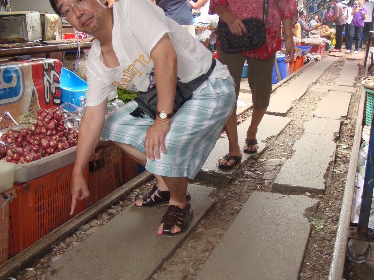 女性で追いつくのはかなり難しい早さだった。市場では電車到着時間を説明し、その場に再集合という事で解散。どこで見るのが良いかなど一切ガイドなし。