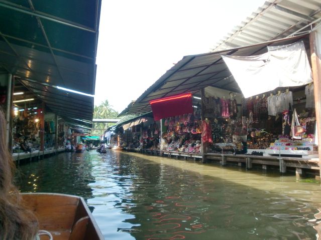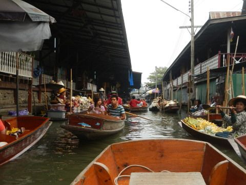 水上マーケットはエンジンボートでマーケットへ行くまではスリリングで楽しめましたが、マーケットでは小舟に乗り換えないと時間をつぶすのに一苦労します。土産物をはじめ何もかもがボッタクリ価格(価格表示がなく3~5倍の価格を告げられる)で買う気もなくなります。