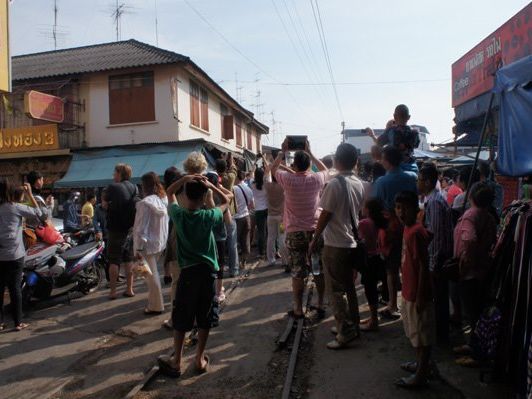 線路上にギッシリと店が並び現地人も普通に買い物していてディ―プ感満載でしたよ観光客は欧米人がほとんどでアジア人は日本人ぐらいでした9時頃電車が通過する時は一見の価値ありです。