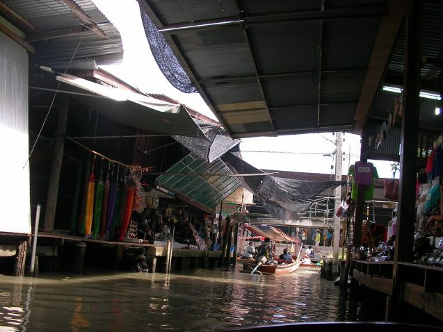 水上マーケットには、モーター付の船で細い水路を通って行くのですが、かなりのスピードで走るので、スリル満点でした。水路の両側に一般のお家が見え普通に洗濯や水浴びをしていました。このツアーの中でも、一番楽しかったかも。