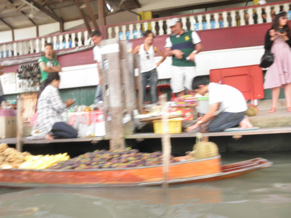 オプションで小さな船に乗り換えると脇道の小舟から直接物が買えたりして楽しいようですが、私は船着き場の土産物店でノンビリ他のツアー客が船に乗り終えるのを待ちました。