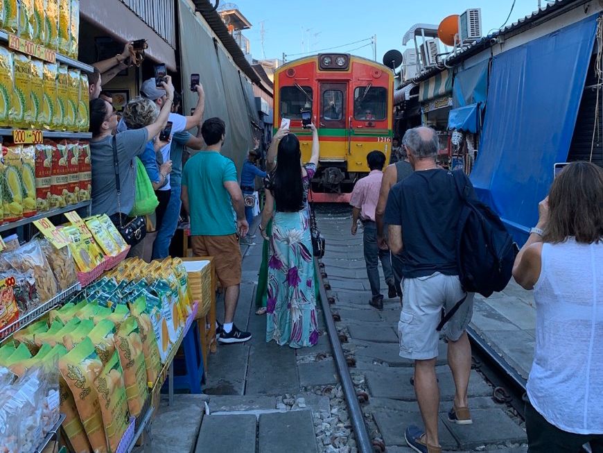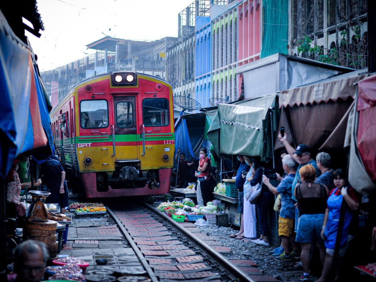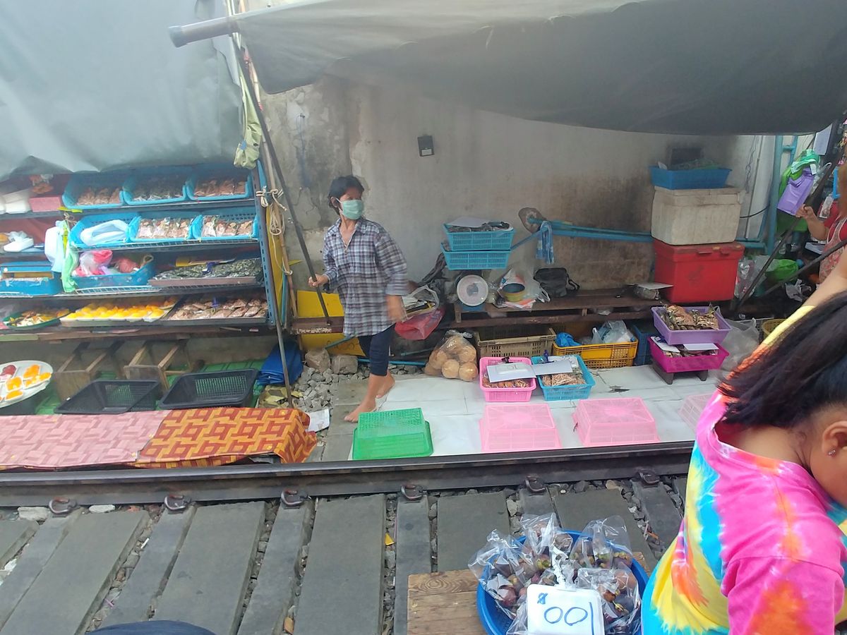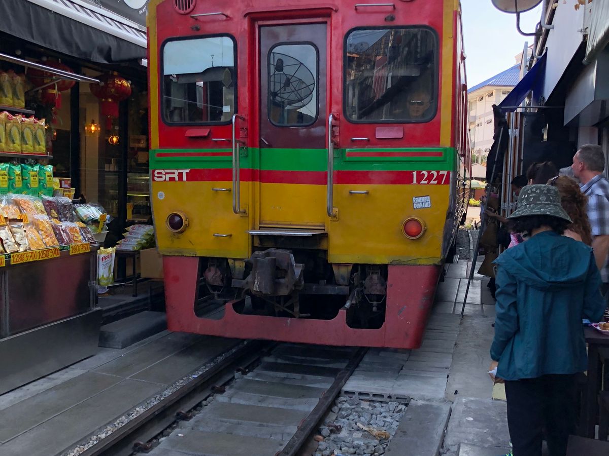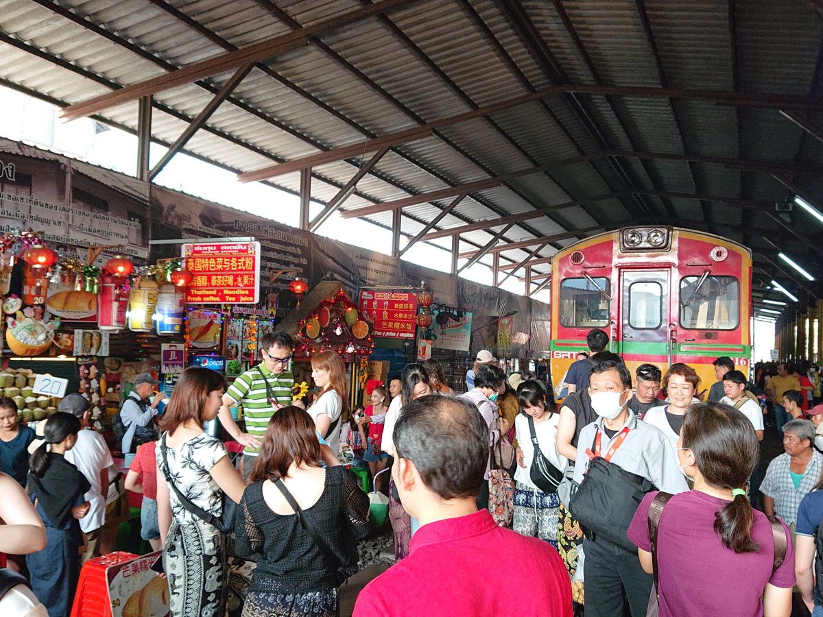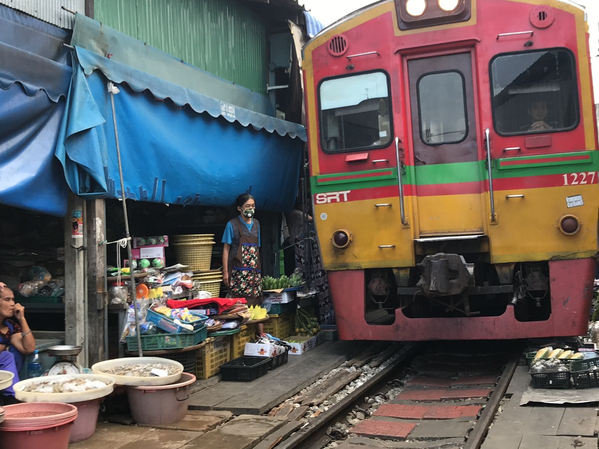 メークロン線路市場では電車が通過する瞬間を間近に見ることが出来とても感動しました。