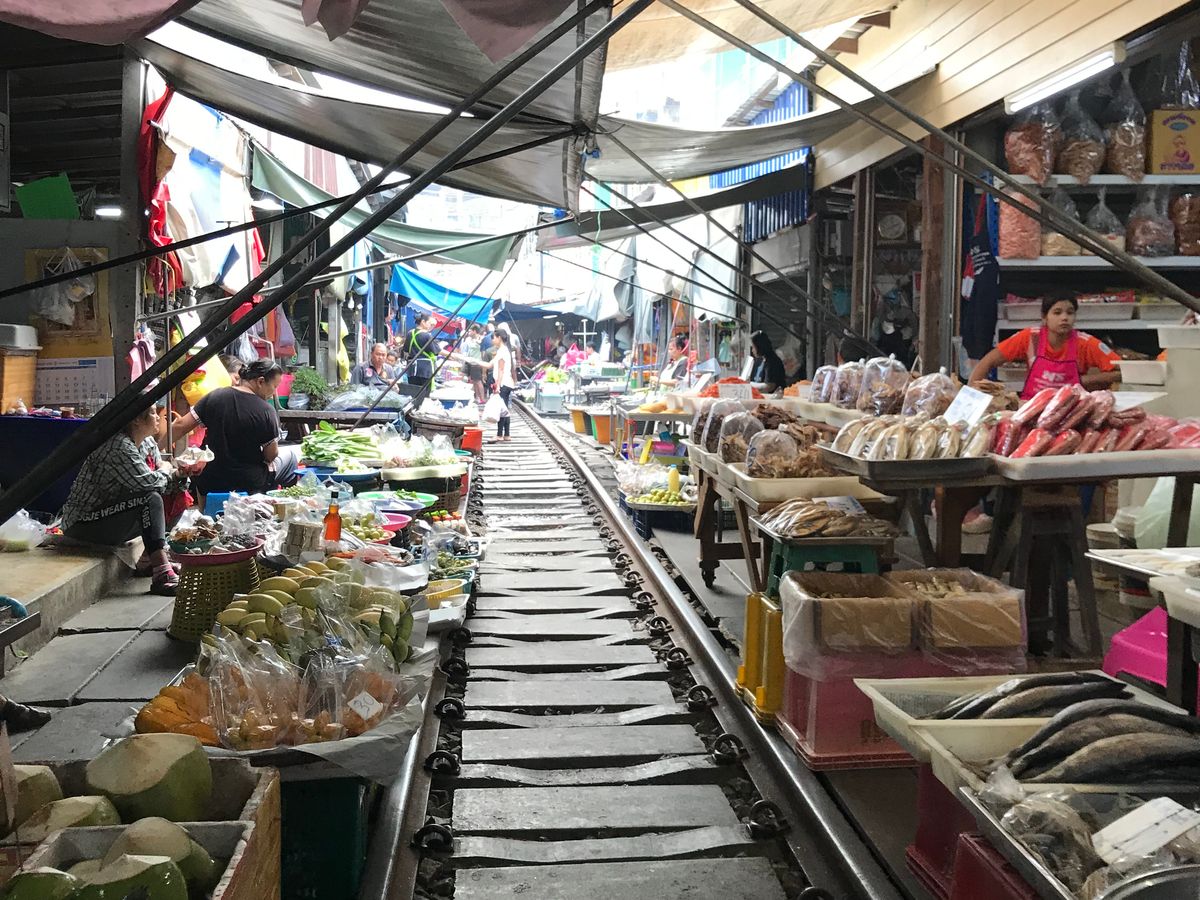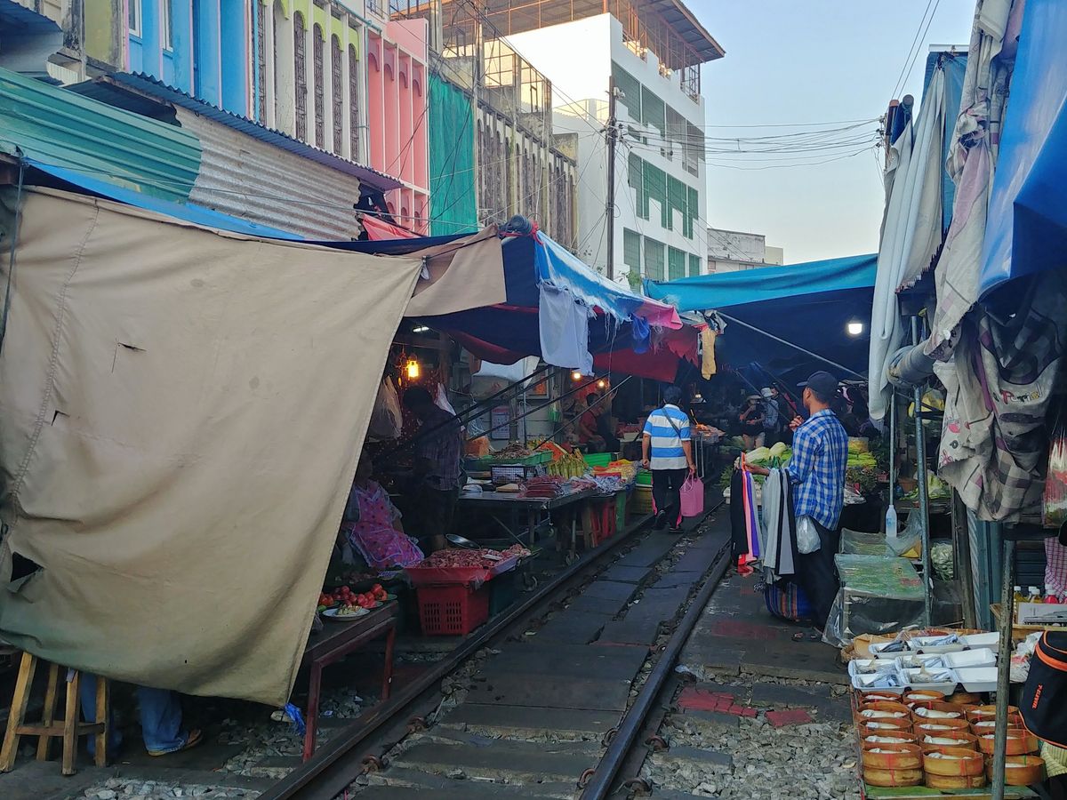 メークロン市場は、鉄道がすぐ近くを通って感動しました。市場を畳む様子を見れるのも魅力の1つです!
