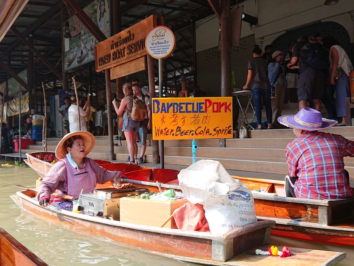 そして水上マーケットでは、200バーツ払って乗る必要があり、最初は困惑しましたが乗る価値ありです。