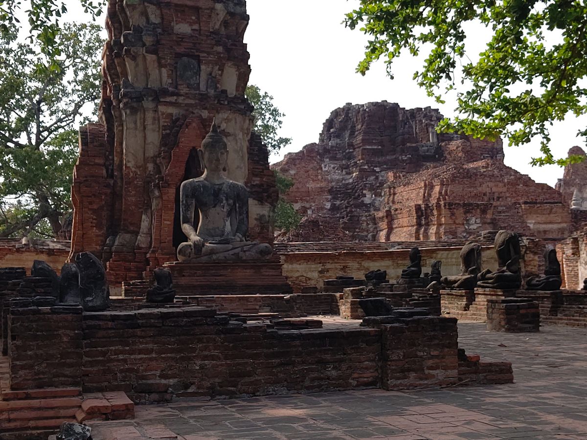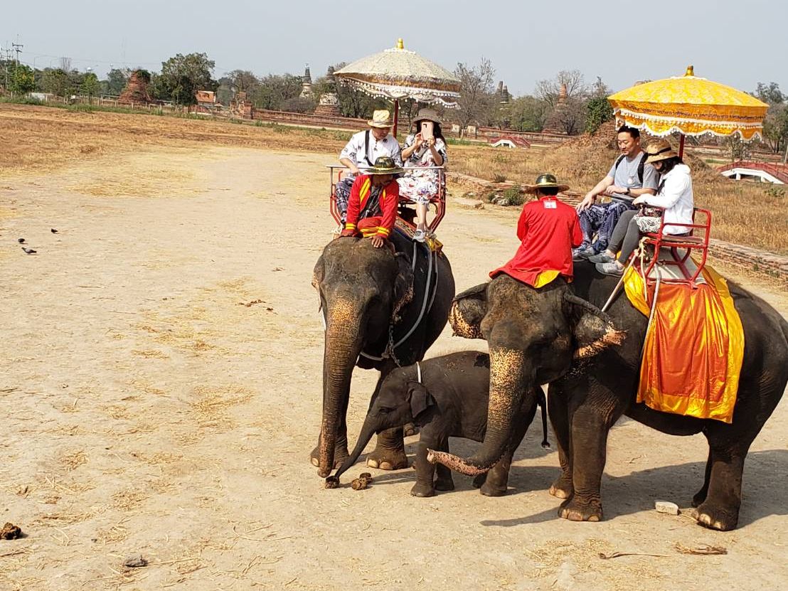 自分たちだけで1日で水上マーケット、鉄道市場、アユタヤ周辺を周るのはきっと厳しいと思いますがこのツアーに参加したことで一気に3箇所行けてしまいとても充実した1日になりました。タイ人の日本語ガイドさんはとても優しく常に暑さや水、トイレなど気にかけてくれました。まず初めに1時間ちょっとかけて鉄道市場に向かいました。見所の1日に数回しか通らない鉄道は思いの外距離が近くとてもびっくりしました。地元の方が利用する市場なので肉、魚、野菜などが多く売られていましたがフルーツスムージーやちょっとした軽食もありバンコク市内の市場よりも安かったです。鉄道は終点駅なので鉄道の中にも入って写真を撮ることができました。次に行ったココナッツファーム見学は想像と違い規模はとても小さかったですがココナッツオイルなどがとても安く売られていました。ガイドさん曰くバンコクではこれにブランドをつけて高くうられているらしくここで買えば少し安く手に入ります。次に水上マーケットに行きました。入り口にはお金を払ってニシキヘビを首に巻いて写真を撮れるところがありました。そしてその後に手漕ぎボートに乗るか聞かれます。1人200バーツです。最後にみんなでエンジンボートに乗る機会はあるのでボートに乗って水上マーケットを楽しみたい方だけ乗るのをおすすめします。手漕ぎボートでの水上マーケット体験は周りでものを売る人たちからの勧誘がとてもすごかったです。私たちがエンジンボートで周ったところは水上マーケットというよりも実際に地元の方が住んでいるあたりをまわりました。たまに水が跳ねてくるぐらいスピードを出してくれるためアトラクション並みに楽しかったです。その後、昼食を食べるため約1時間程かけてバンコクへ戻りました。「ソンブーン」とゆうレストランにて昼食を食べました。蟹カレーや空芯菜炒め、海老のすり身揚げ、ご飯、ジャスミンティーをいただきました。カレーは甘めの味付けでとても食べやすく、美味しかったです。他の料理も日本人好みの味付けでとても食べやすいと思います。とても綺麗な店内で、トイレ休憩も兼ねているため、こちらでお手洗いに行っておくと良いと思います。続いて、約1時間半ほどバスに乗り、アユタヤに向かいました。アユタヤ観光ではまず、ワット・ロカヤスタに行きました。バスを降りると、暑さに驚きました。バンコクとは違い、とても暑く、日差しが強く感じました。帽子の準備や日焼け対策をしておくことをお勧めします。降りてから10分ほど、写真撮影や観光をし、再びバスに戻りました。写真撮影はガイドの方が積極的に撮ってくださるため、とても助かりました。次の遺跡はワット・ヤイチャイモンコンです。こちらもとても暑く、自由時間には日陰で休むほどでした。観光客がとても多いわけではなく、天気が良い日にはとても良い写真が撮れると思います。ワット・マハタートでは、木の根から顔を出している仏像を間近で見ることができます。その仏像と共に、写真を撮ってくださるため、とても良い思い出になると思います。その後、とても楽しみにしていた象乗り体験に行きました。1組10分ほどですが延長する必要がないぐらい十分満喫できると思います。私たちが乗った象は途中で鳴く時がありその時は落ちるんじゃないかという恐怖がありましたがとても貴重な体験をすることができました。自分たちの携帯で象乗り士が何枚か写真を撮ってくれましたが象になった状態で象との写真が撮りたい場合は他のグループの人たちと撮りあったほうがいいと思います。また、同じ敷地にトラと写真を撮れるところもありここは希望者だけ200バーツで写真を撮ることができました。これもまた貴重な体験なのでぜひ興味がある方は体験してみてください。最後に行ったワット・プラシーサンペットでは、観光客が少なく、観光しやすい王宮でした。ガイドの方が、バスでの移動中にそれぞれの寺院について説明してくださるため、これまでの歴史への理解も深まることが、このツアーでの良い点であると思います。バンコクから北にも南にも行けるツアーで1日でトータル400kmの移動距離でした。車内は冷房が効いていてとても快適でした。朝早かったのと暑さからの疲れで移動中は基本みんな爆睡していました。また、車内にWi-Fiと充電も完備されていました。ちなみに充電は10バーツだそうです。私たちは私たちを含め3組でまわりました。同じツアーを申し込んだ人たちも大体が3.4組でまわっていました。人が多すぎずちょうどいい人数での行動だったので家族でも友達でもカップルでもおすすめのツアーだと思います。実際に自分でまわるとトータルどのくらいの金額になるかわかりませんがこの値段で全てまわれるこのツアーはとてもお得なのではないかと思います。
