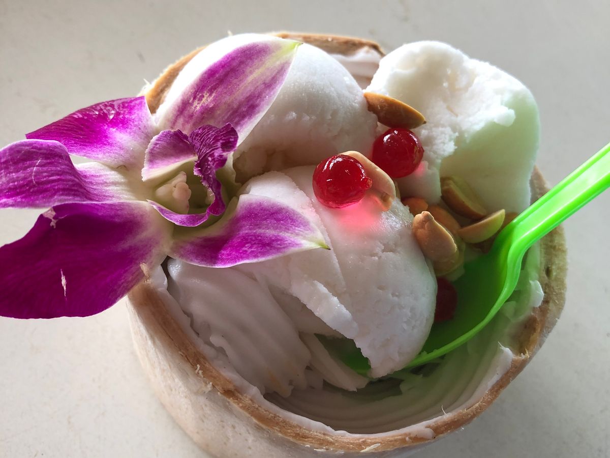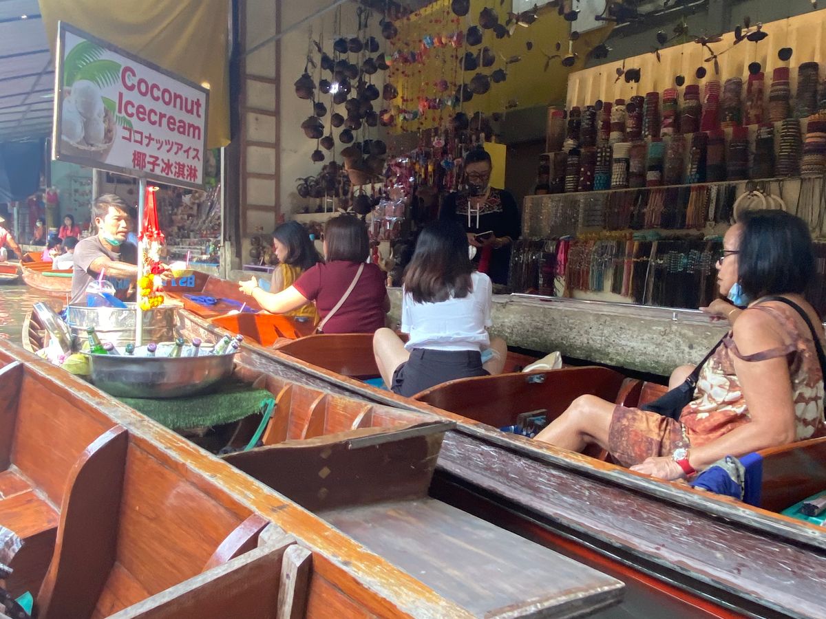 水上マーケットはメイン場所へ行くまでのボートがスリリングで最高!!ココナッツアイスは50バーツで可愛いくて美味しかったです。