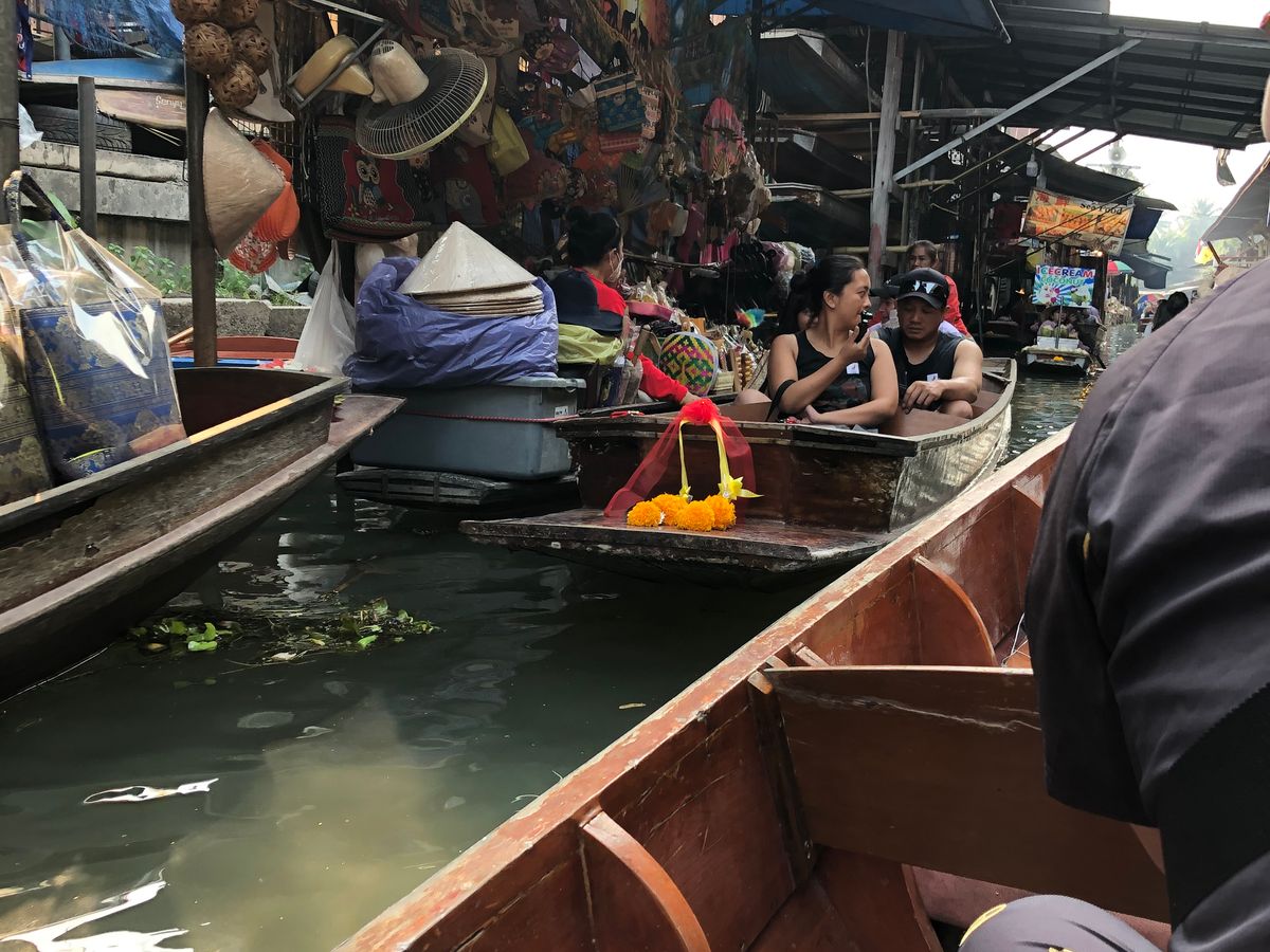 水上マーケットのボートは最初は怖いけど、慣れると気持ちよかった。