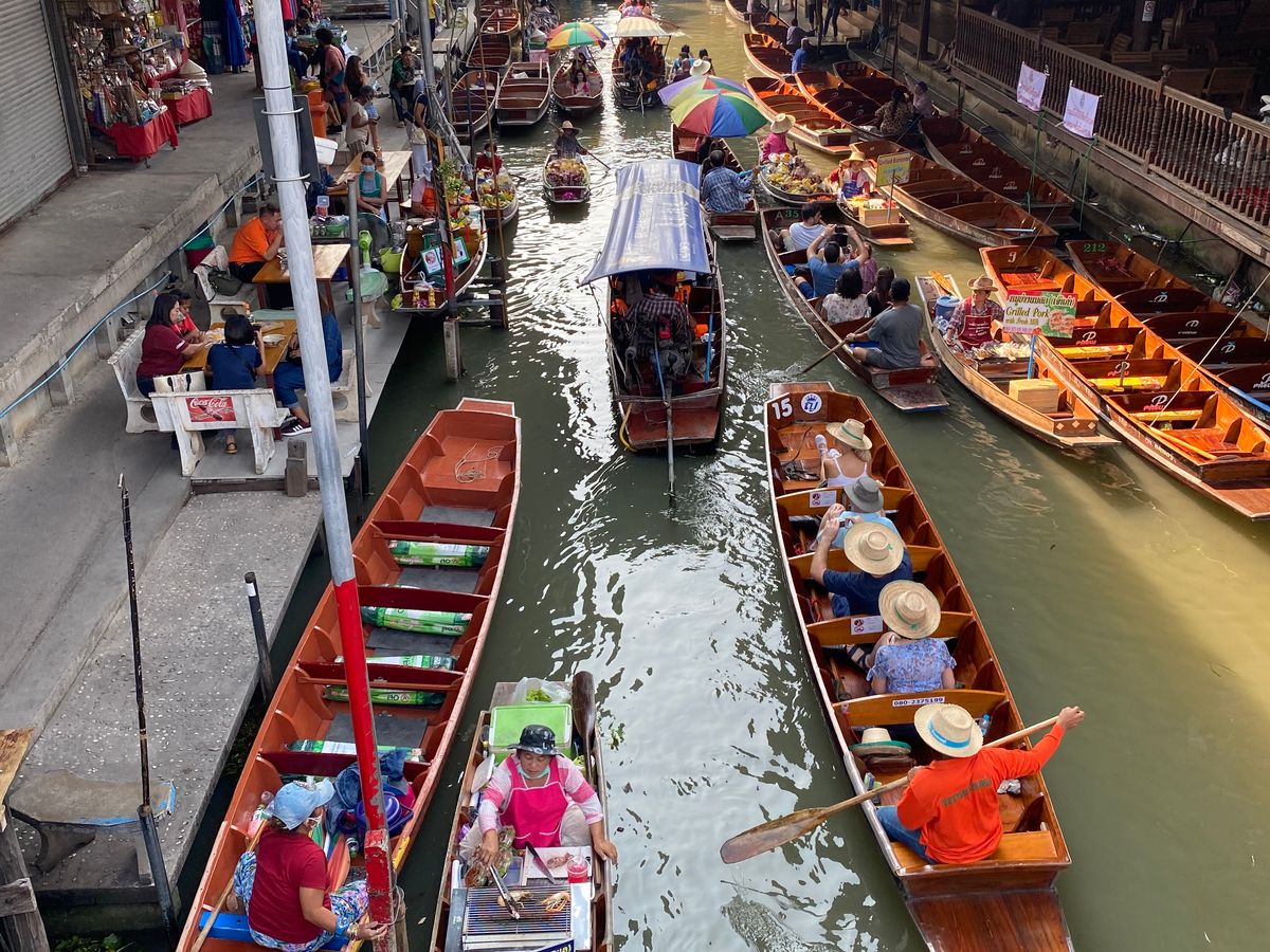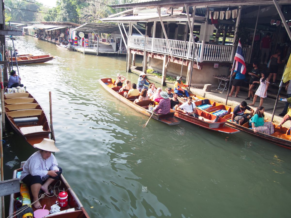 バンコク市内からは少し距離がある所なので、自分で行くとなると値段や時間も気にしないといけませんが、ツアーは全て込みの値段、計算された時間なので、圧倒的コスパの良さでした。ガイドさんの日本語の案内もあったので、回りやすく、写真も撮っていただいたりと至れり尽くせりでした。今回の旅のメインはメークロン市場だったのですが、水上マーケットも躍動感があり凄く楽しめました。ぼったくられたのも良い思い出です。