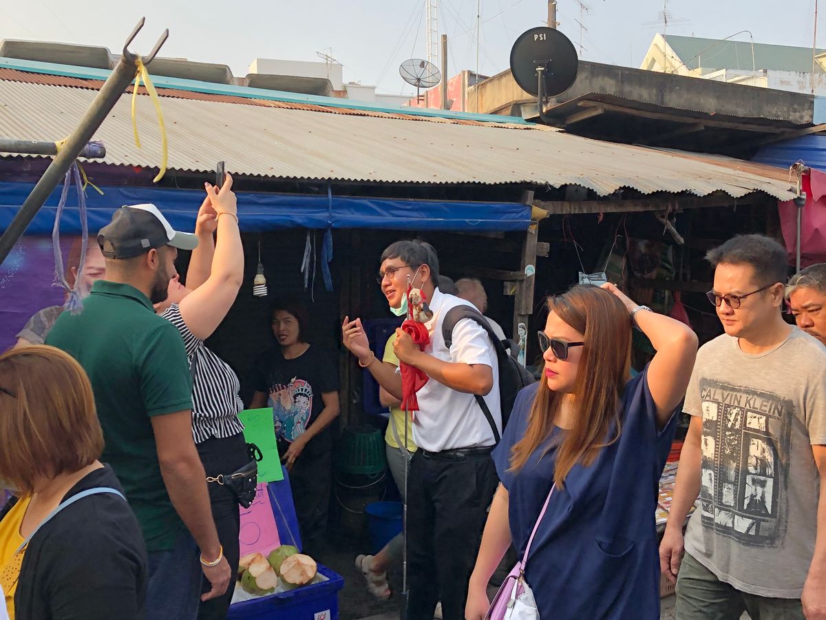 朝遅刻気味で行ったのですが待っていてくださり、とてもスタッフの方が親切なのが第一印象です。始めツアーではなく自力でいこうと思って行き方を調べていたのですが電車が市場を通る時間など計算しなければいけないため面倒になりツアーで行くことにしました。メークロン市場に行きココナッツを加工する場所に行き、水上マーケットに行き、タイラーメンを食べホテルに戻るという日程で帰りの降りる場所は自分の時は2組しかいなかったため、次に自分たちが行きたい場所に近い場所でおろしてもらえました。