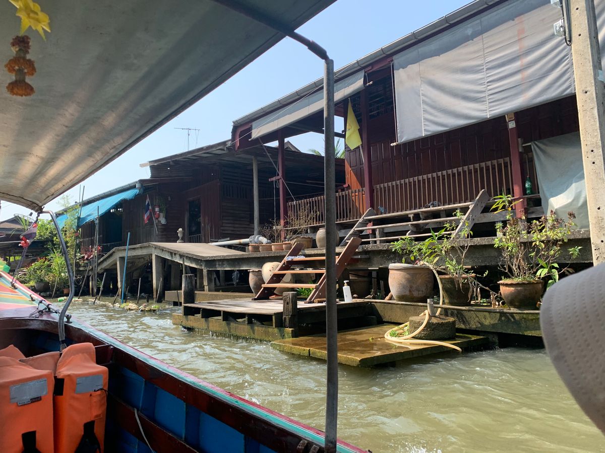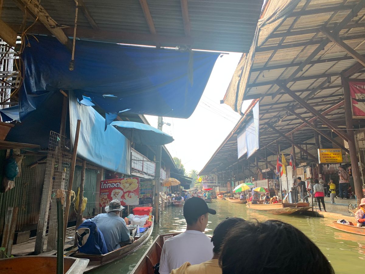 ハイエースのような車に乗って線路市場、ココナッツ村?、そして水上マーケットに行き、お昼ご飯を食べました!個人的には水上マーケットで乗ったエンジン付きの船が1番楽しかったです!リアルジェラシックパーク!!