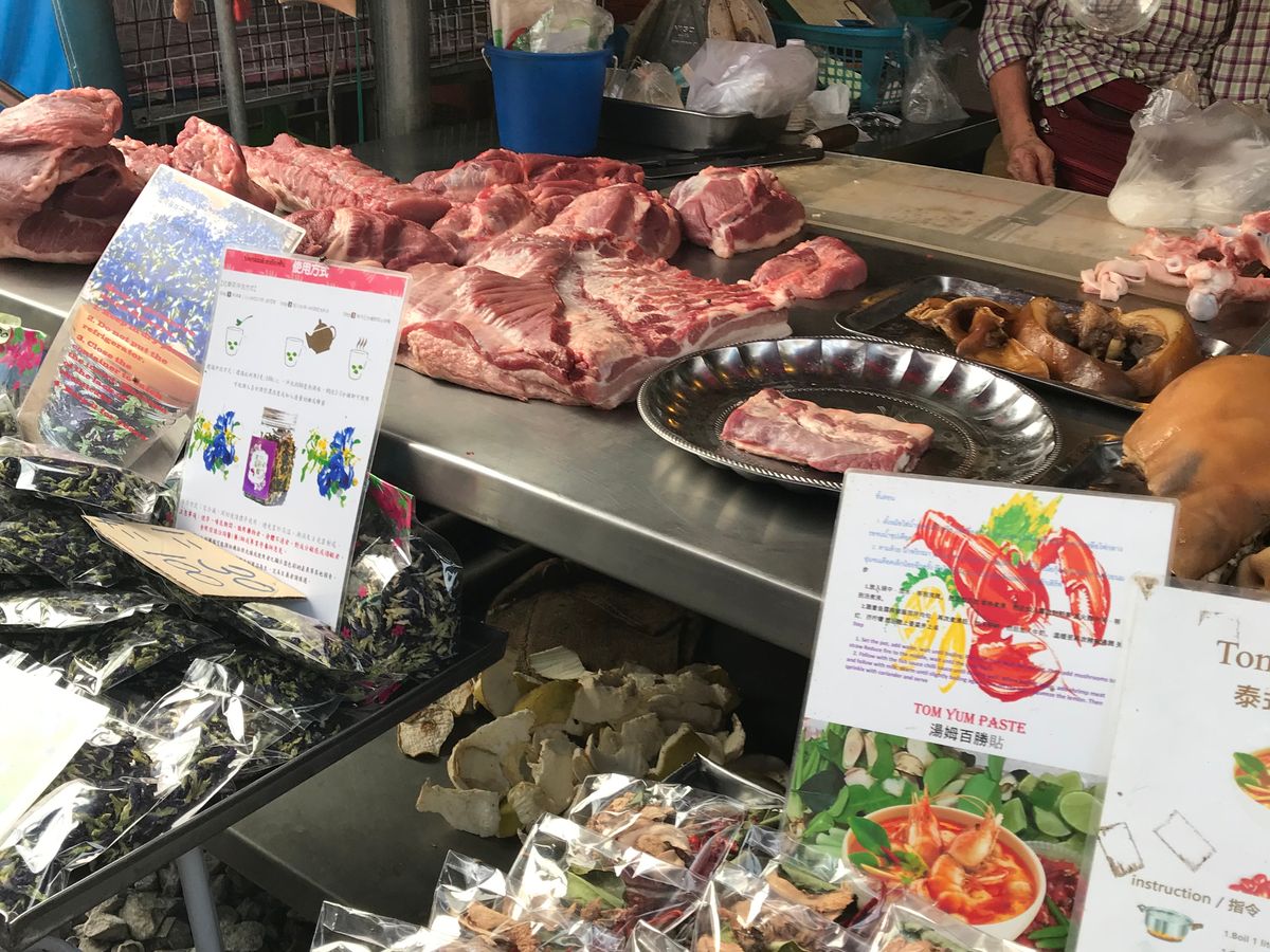 どちらも観光客が多い市場ですが、メークロン市場の方は現地人向けの売り物が多いです。生きてるナマズ?とか生肉とかフルーツとか。水上市場では船に乗って船で浮かんでるお店から買い物できます。それぞれが特徴的でかなり楽しいです。